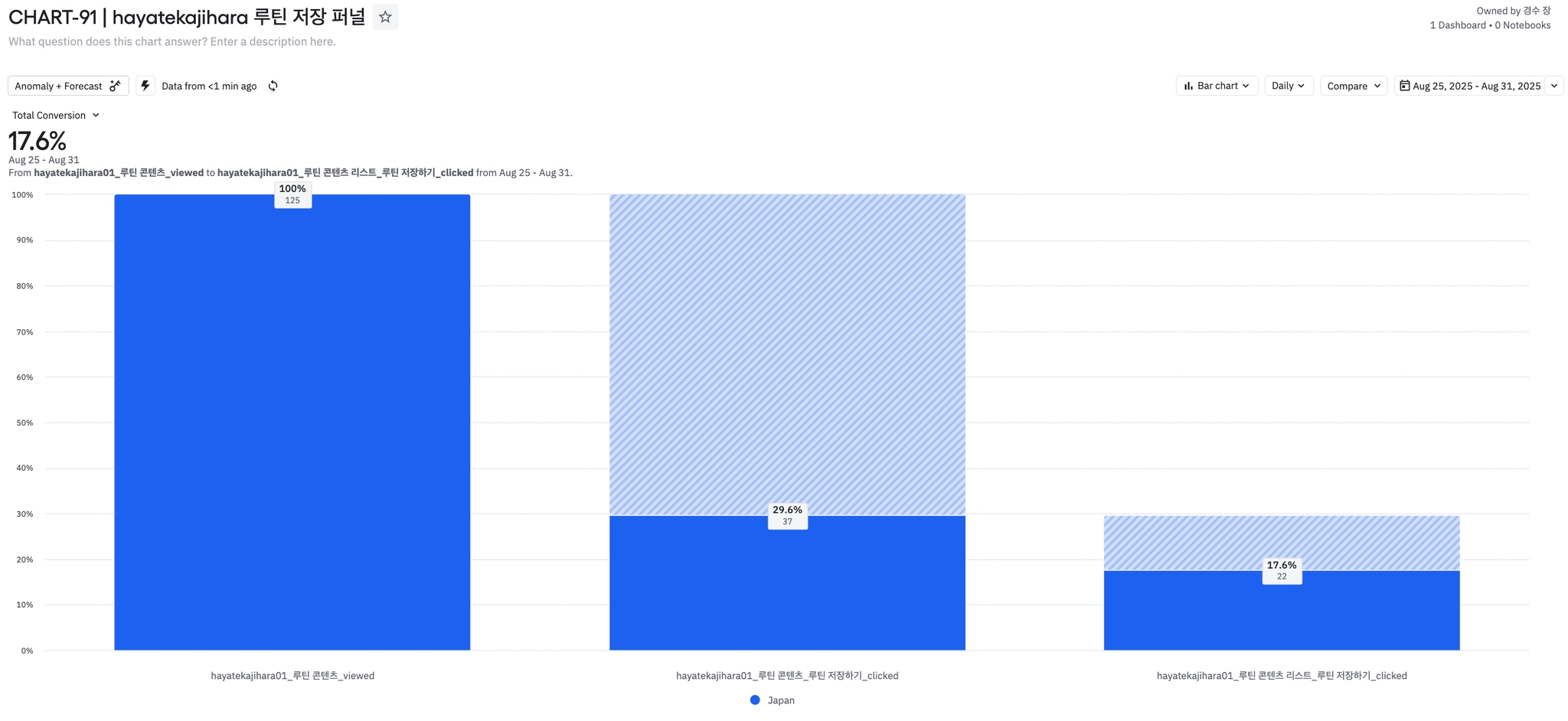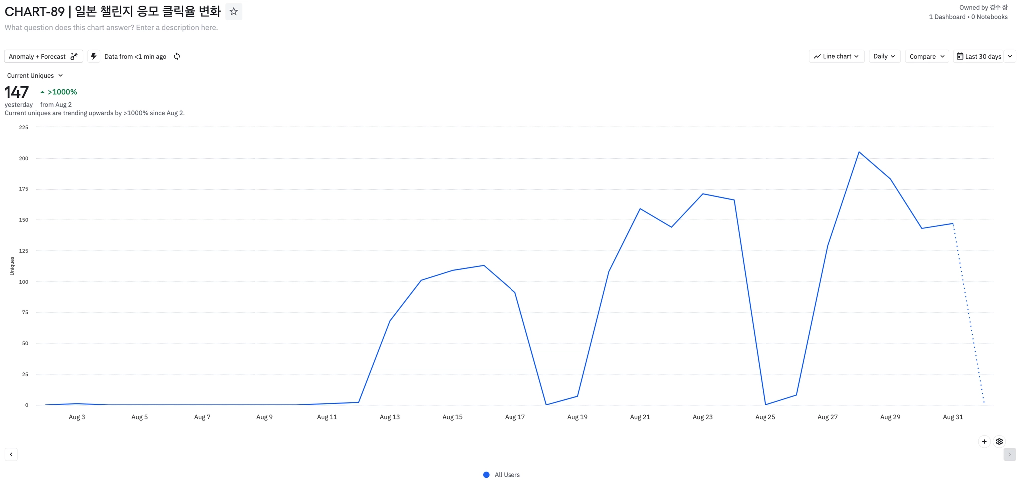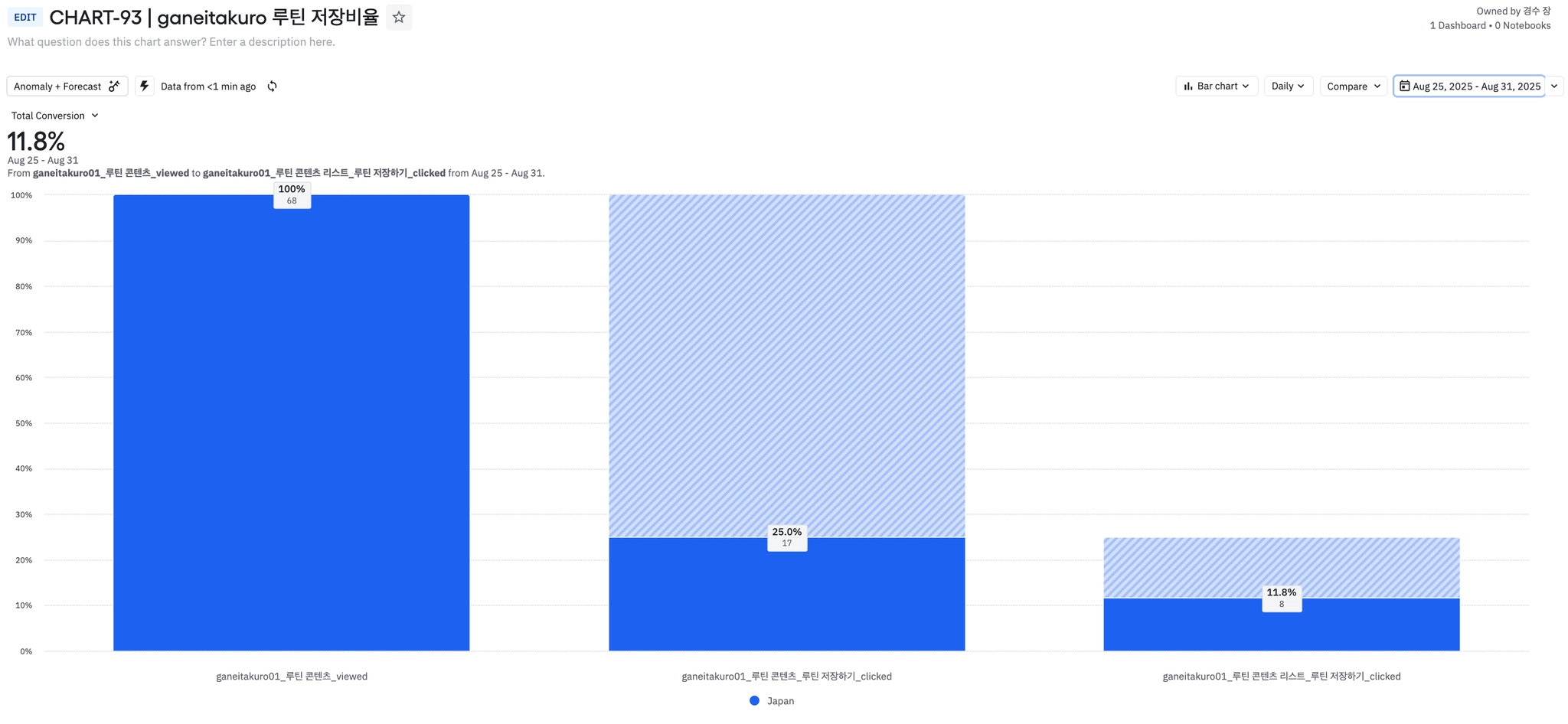 주간 온보딩 종료한 유저 수가 감소하면서 신규유저 추천루틴 배너 클릭율에도 영향을 주었다.