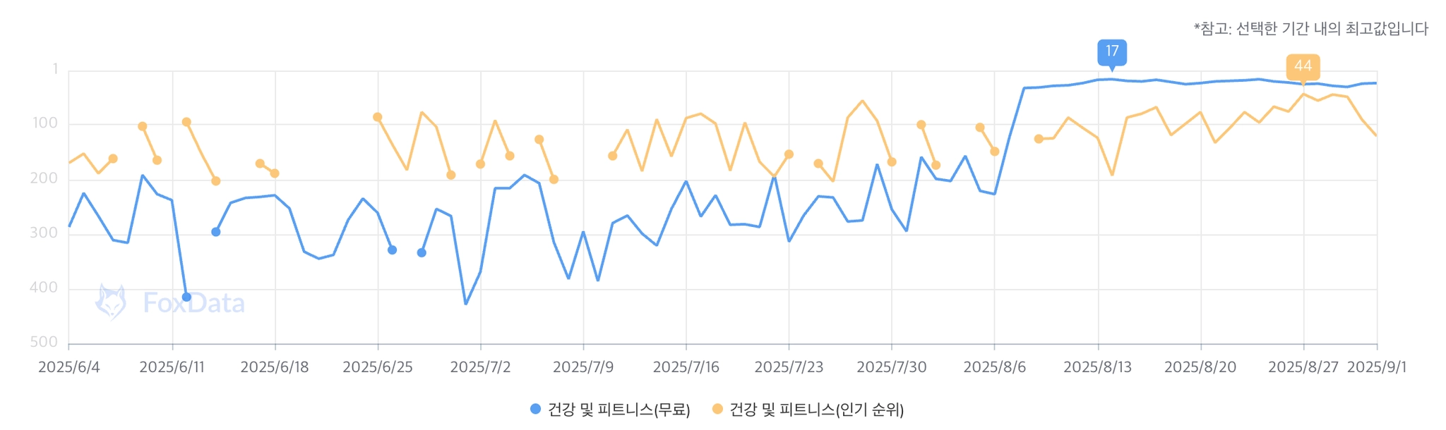 한국: iOS 68위 / AOS 143위