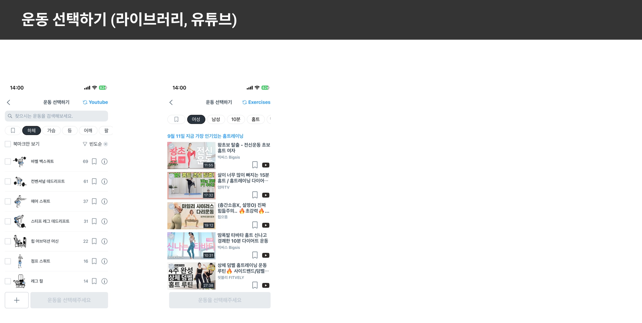 운동 선택하기(유튜브)