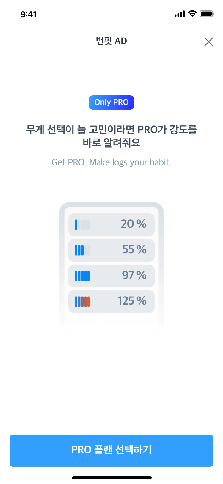 Get PRO. Make logs your habit. | Upgrade ke PRO. Bikin catat latihan jadi kebiasaanmu |