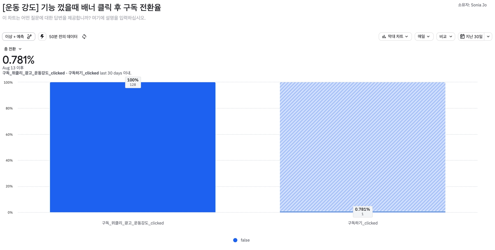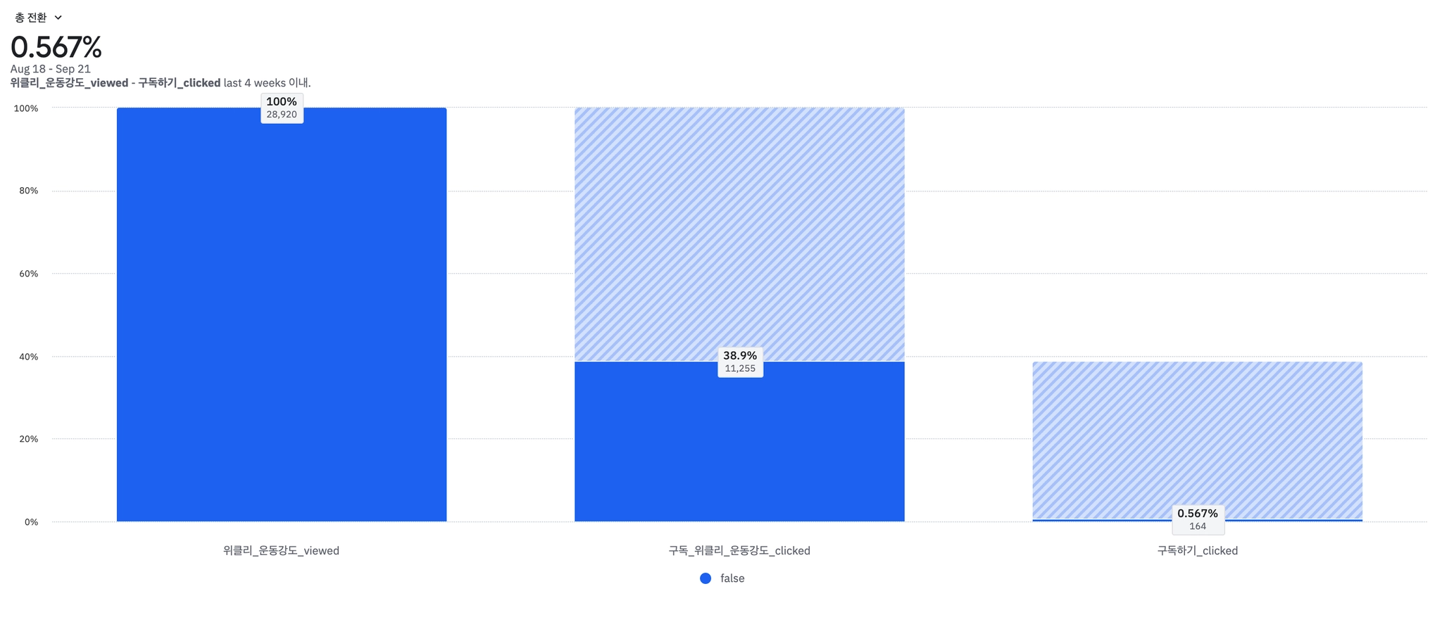 문제점: 운동 강도 바텀시트 클릭 후 구독 페이지에서의 전환율 저조