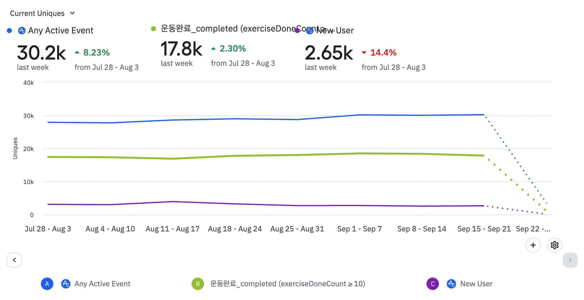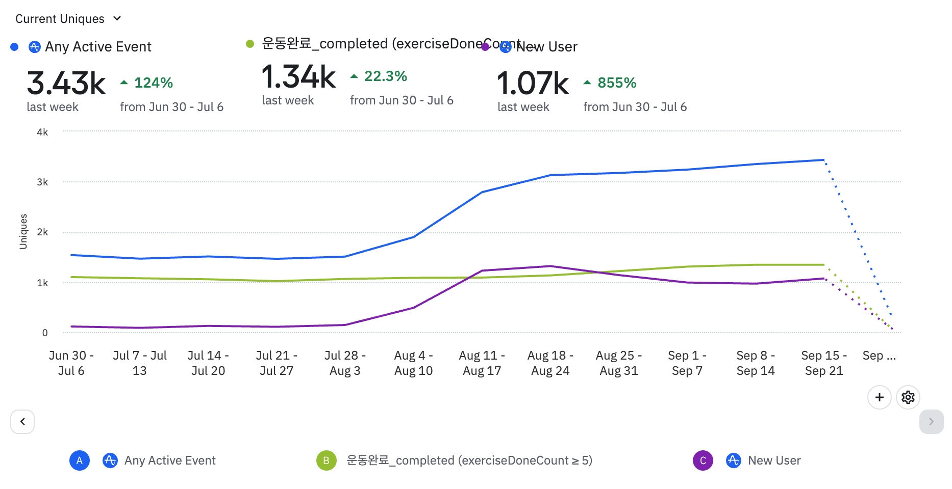1주일에 3번이상 운동완료하는 유저(NSM)