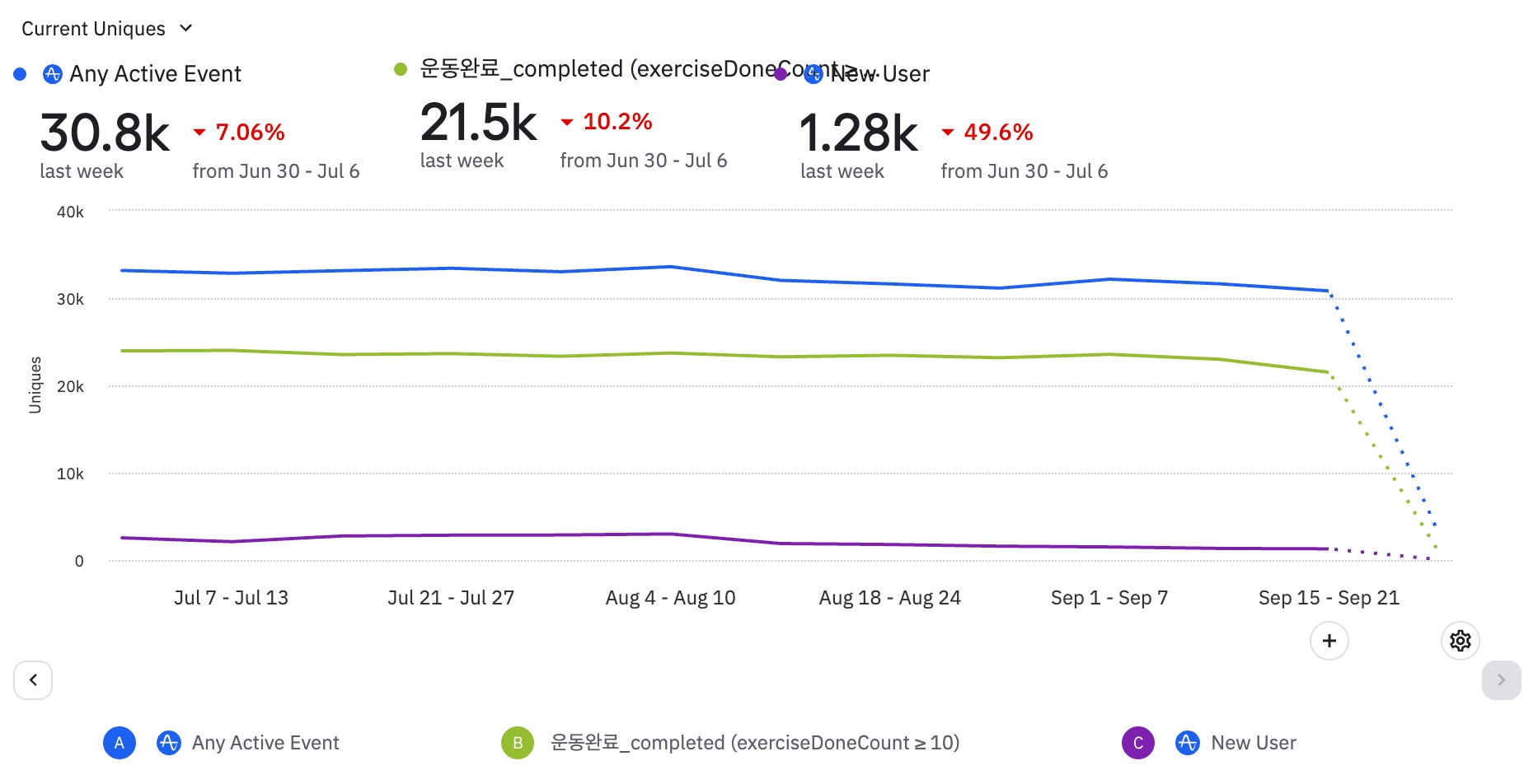 해결: 배너 내 CTA 수정 (자세히 보기 → 바로 시작하기) / 구독 바텀시트 타입 추가로 빠른 전환 테스트 예정 (운동 중간에 보는 것을 고려)