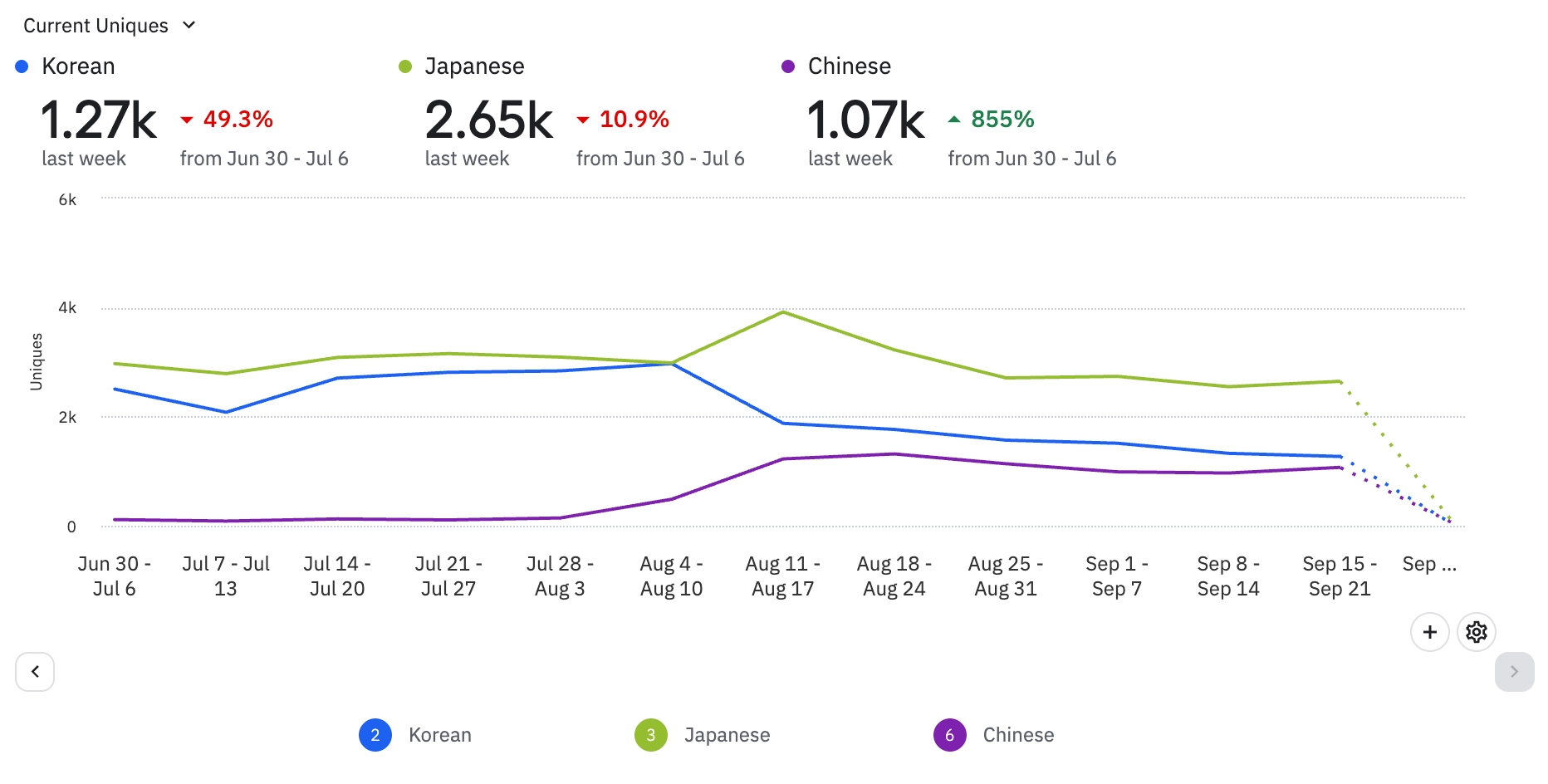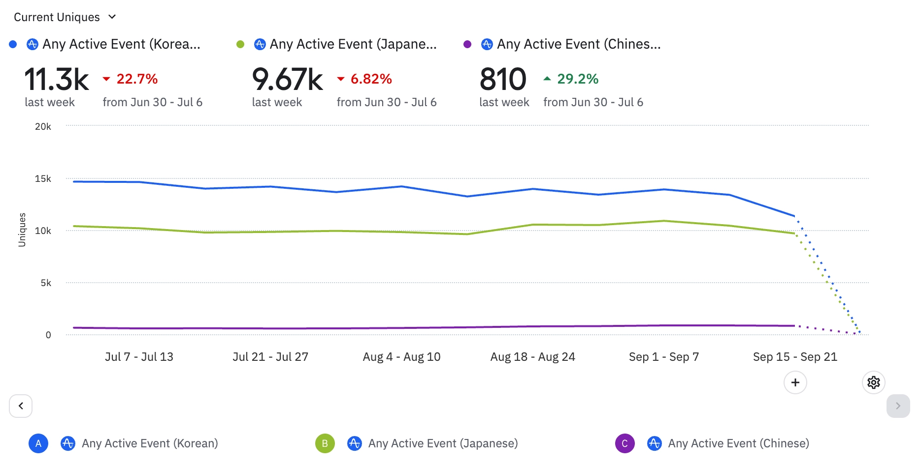 9월 2주차에서는 논프로 지표가 전체적으로 하향했으나, 3주차에서는 상향을 보이고 있음