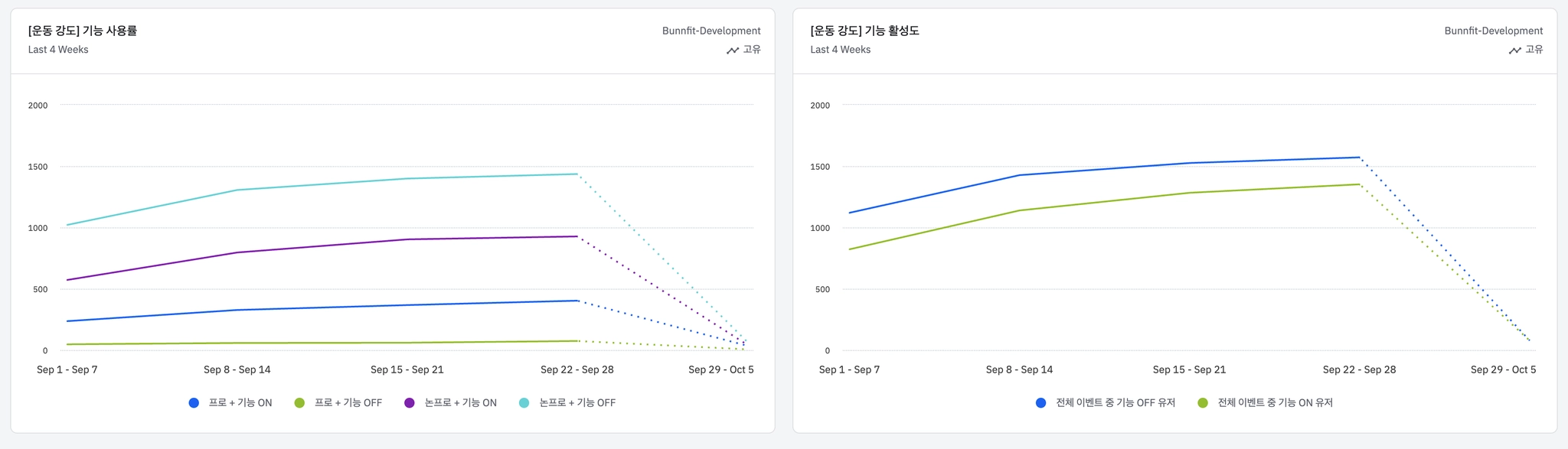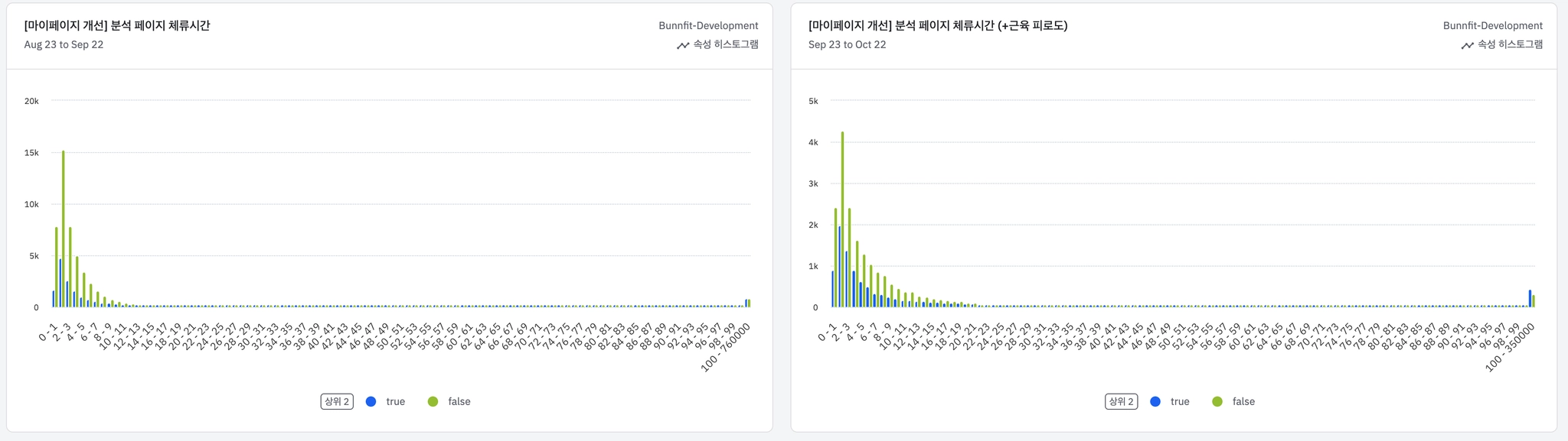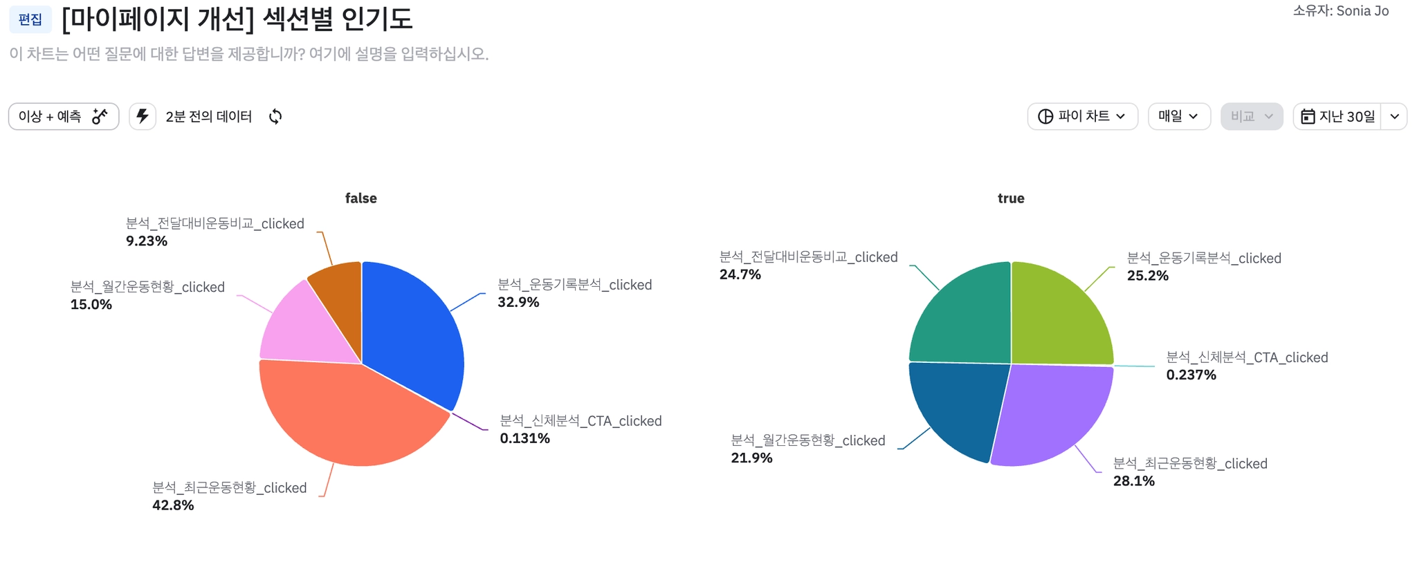 분석 페이지: 프로 유저들의 체류 시간이 소폭 상승함
