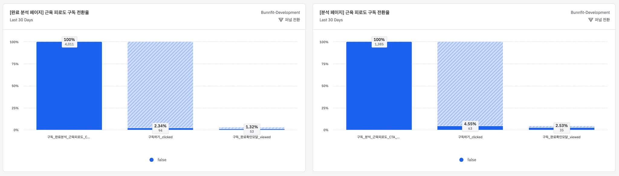 완료분석 페이지가 모수는 많지만 분석 페이지로부터의 전환율이 더 높음