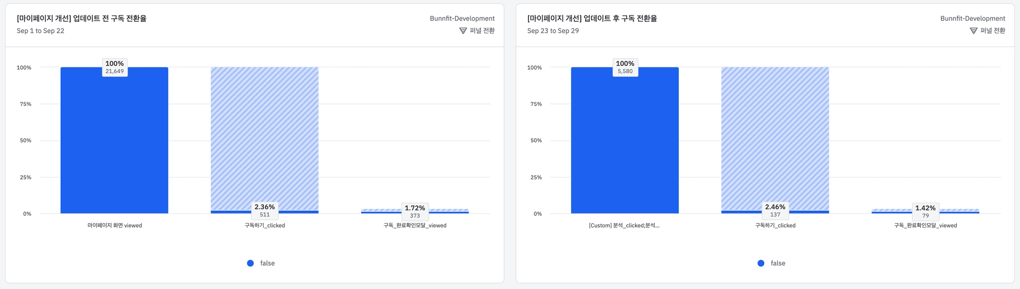 업데이트 전, 후 구독 전환율