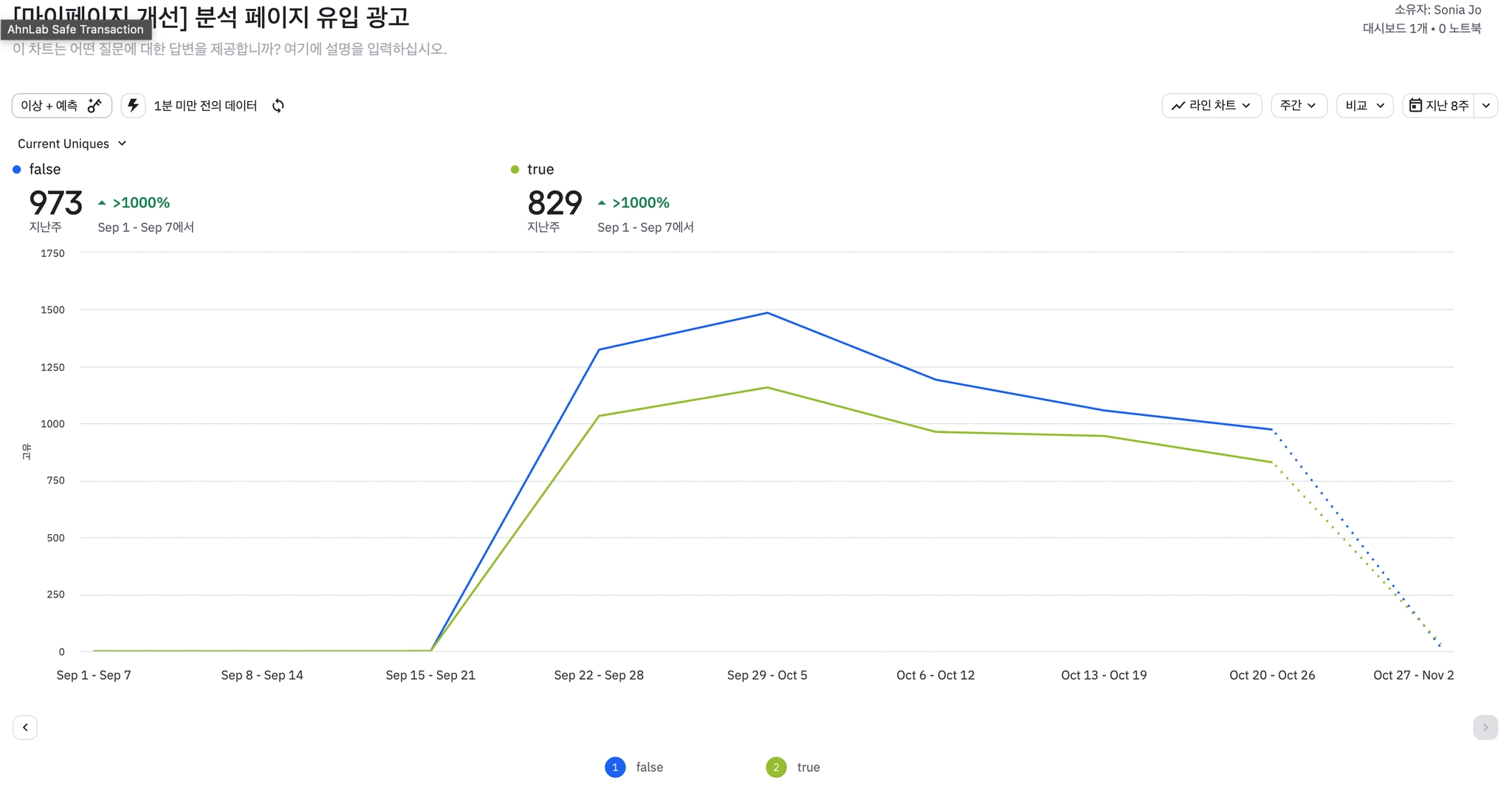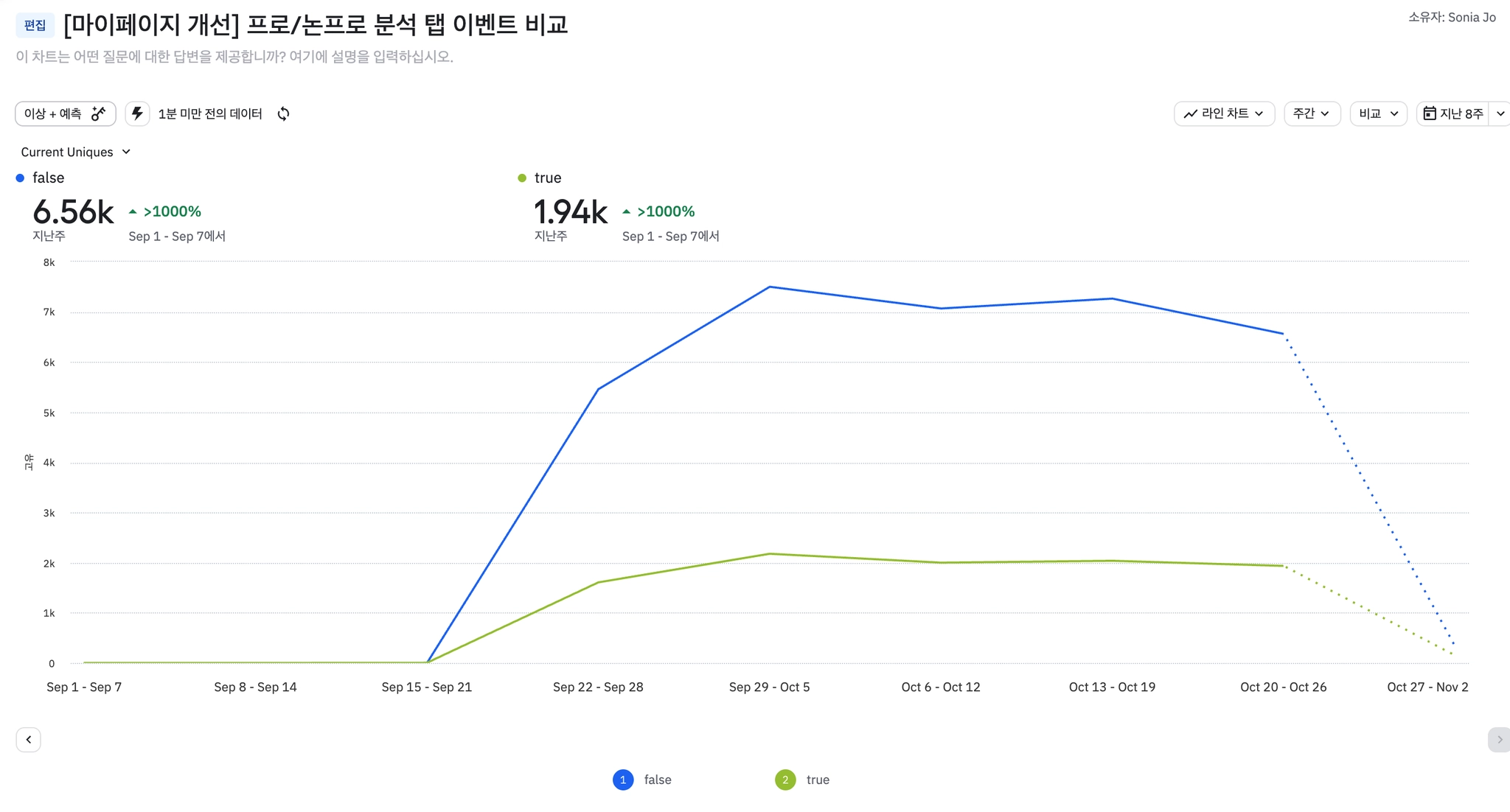 이전에 구두로 공유했던 것 처럼, 분석 페이지가 모수 대비 전환율이 높음