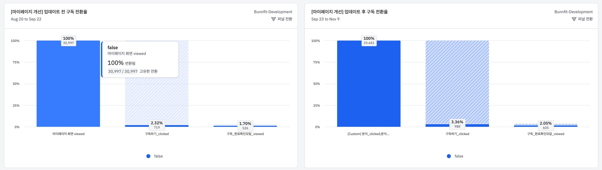업데이트 전, 후 구독 전환율
