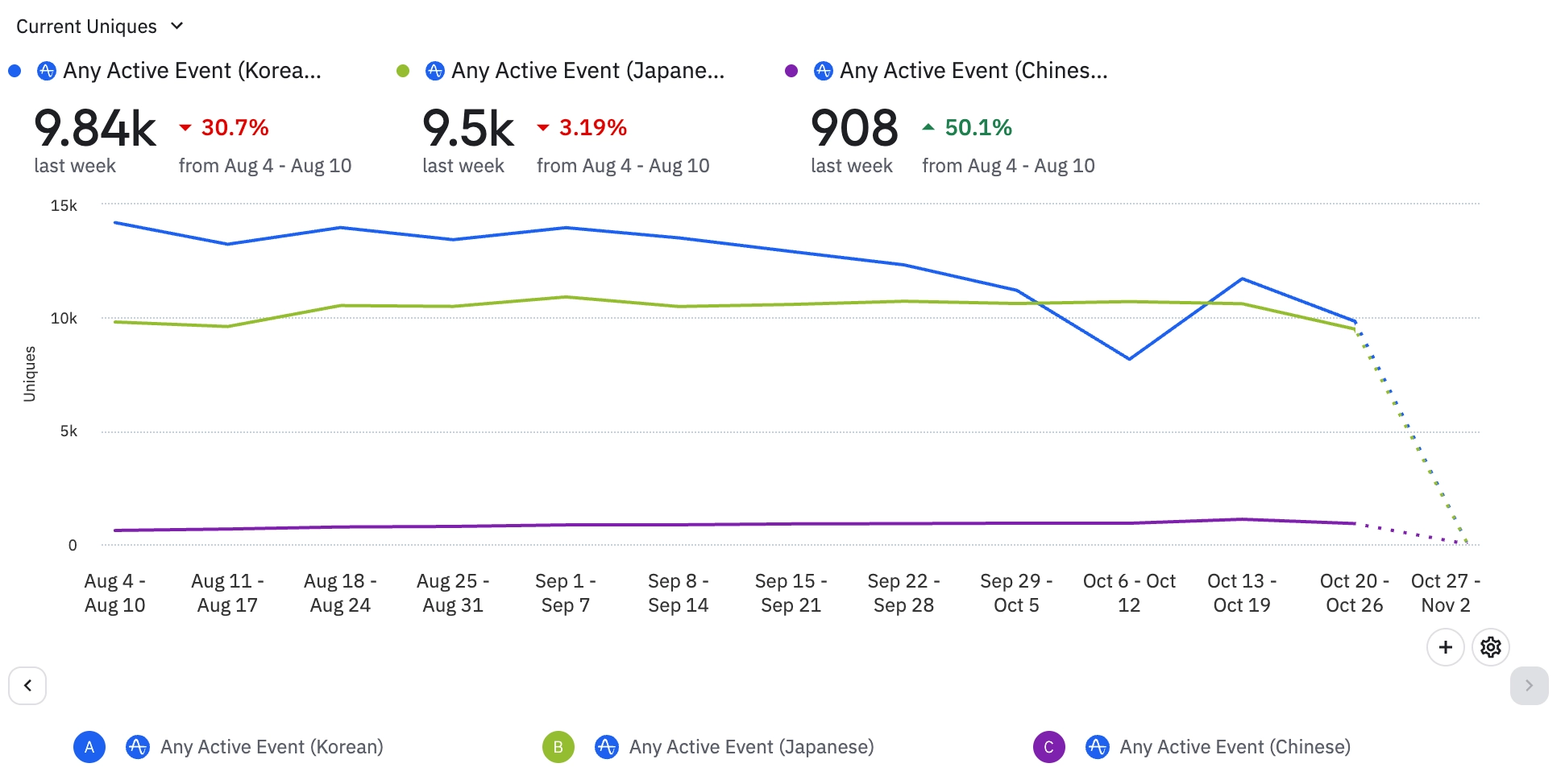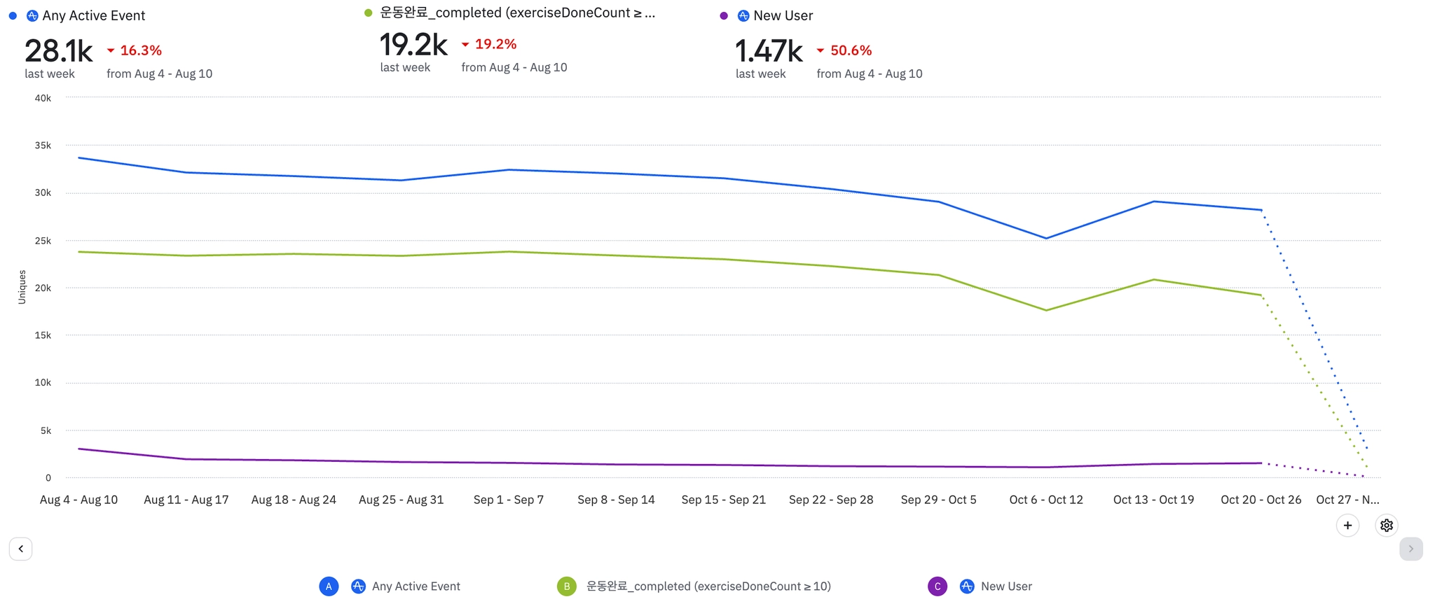 프로 유저의 경우, 이전 주 대비 10.8% 떨어짐
