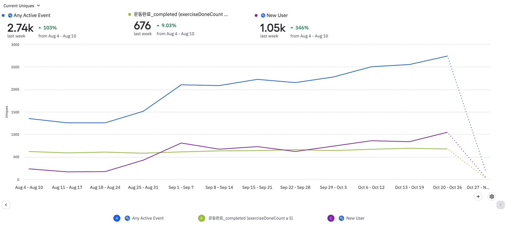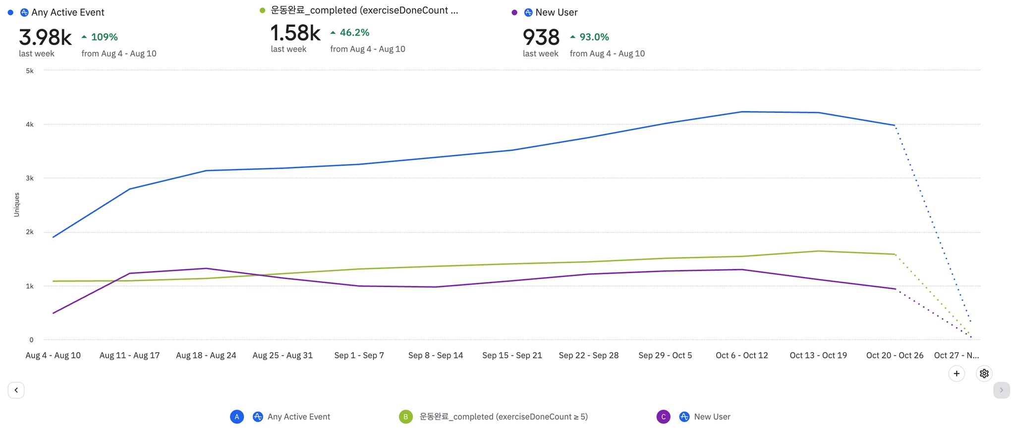 1주일에 3번이상 운동완료하는 유저(NSM)