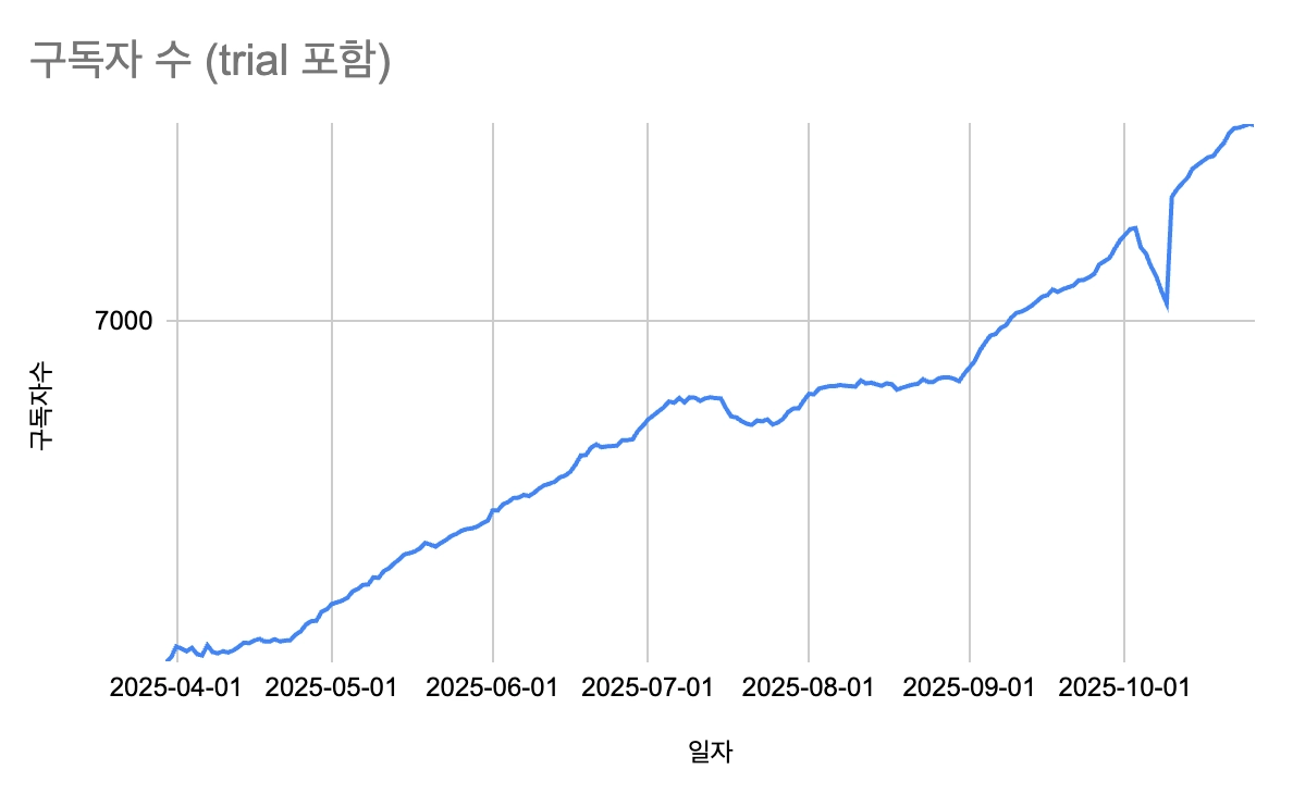 [DEAN] 주간 신규 설치 및 구독 현황 등 (구독 집계 이후인 25.3.30 이후 집계)