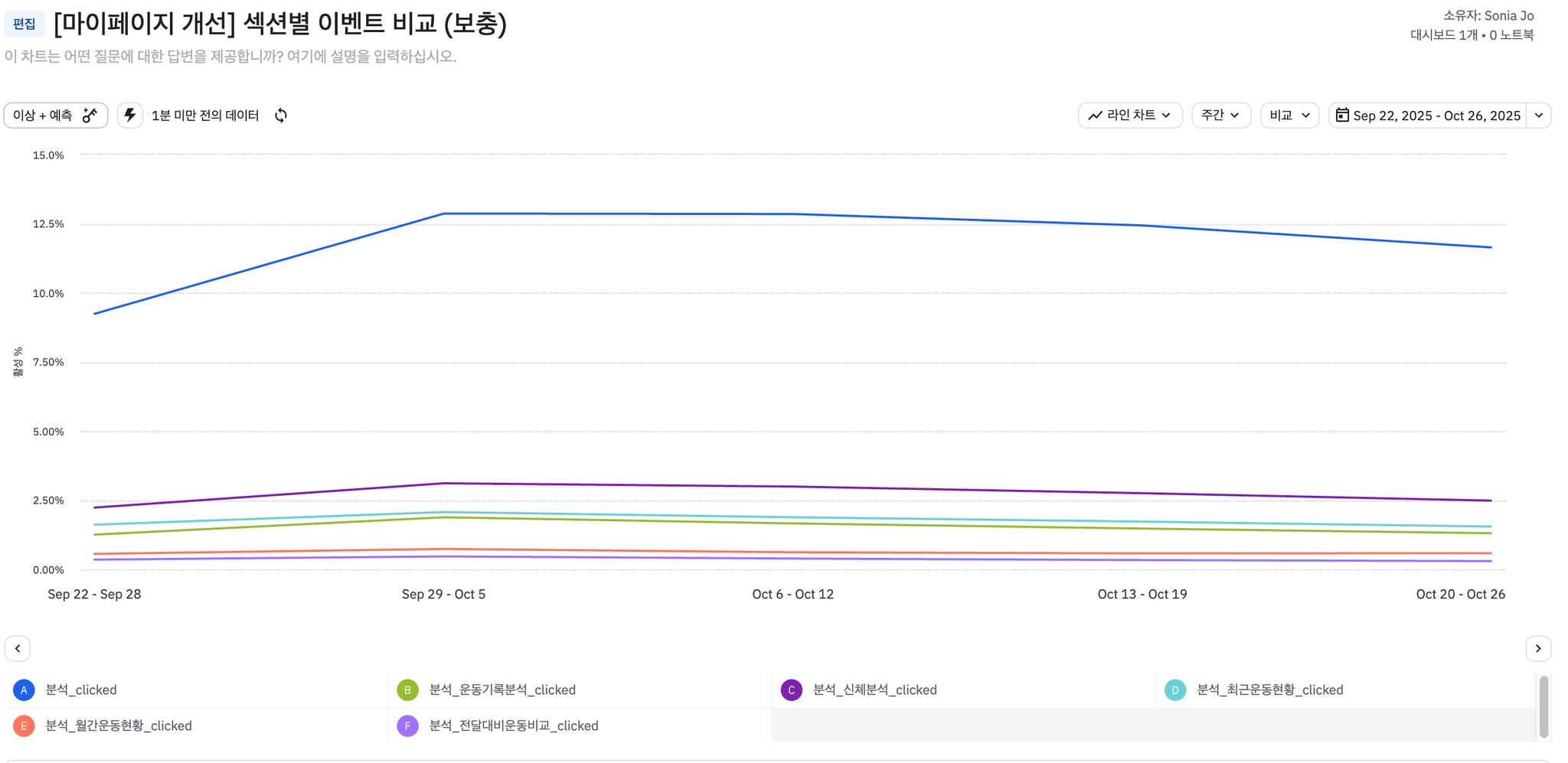 업데이트 후 활성 유저의 11.8%가 주마다 분석 페이지를 접근하고 있음