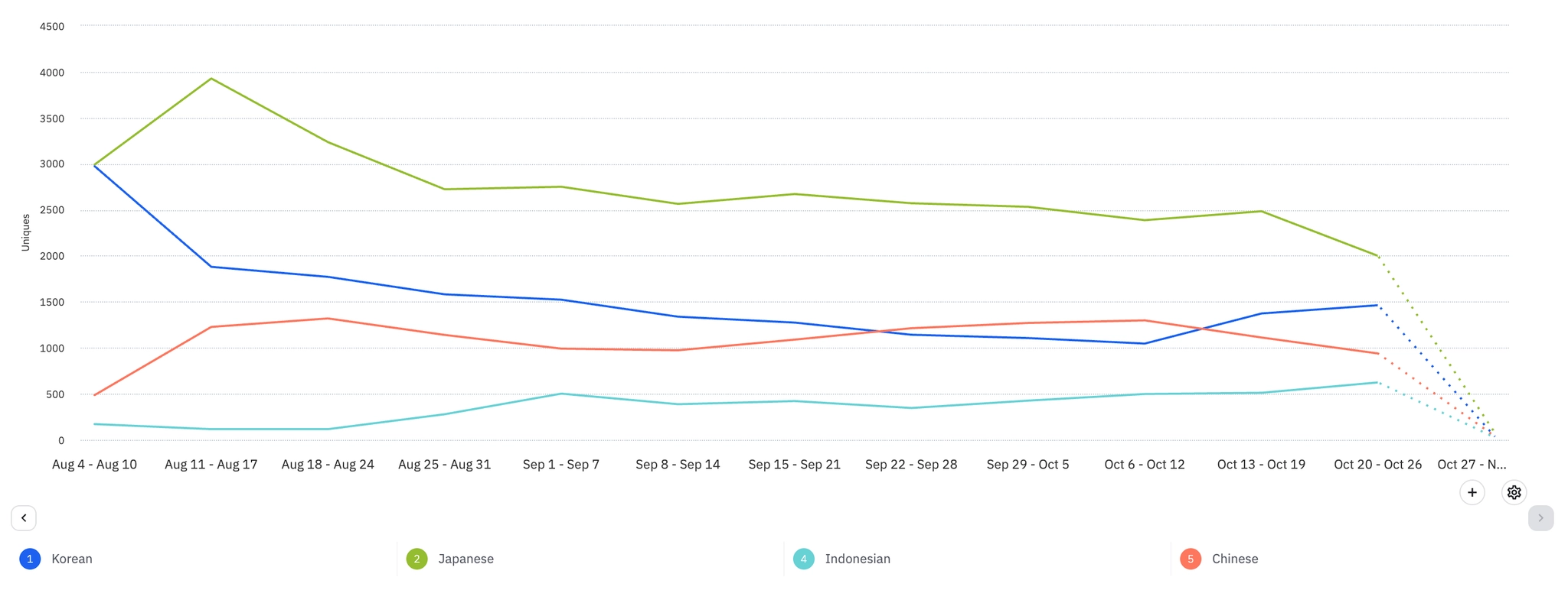프로 유저들은 지속적인 관심을 보이고 있음 (지표상으로는 이전 주 대비 -5%정도 떨어짐)