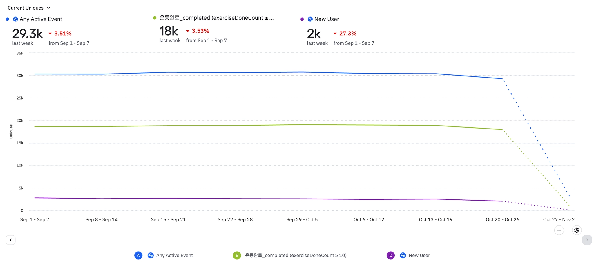 프로 유저의 경우, 이전 주 대비 12.3% 떨어짐