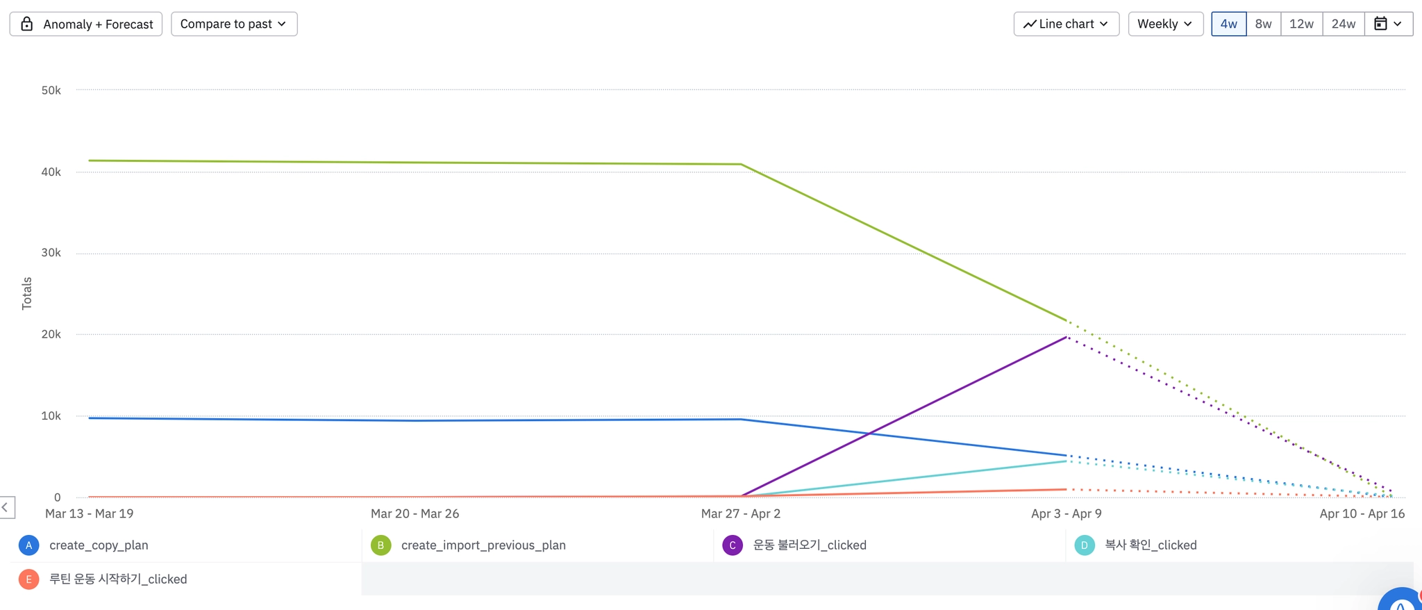 루틴 사용 현황 - 불러오기, 복사, 루틴 사용 비율