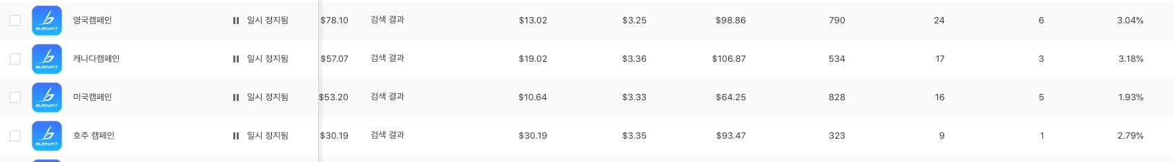 [애플 키워드 광고는 너무 효율이 안좋아서 중단]