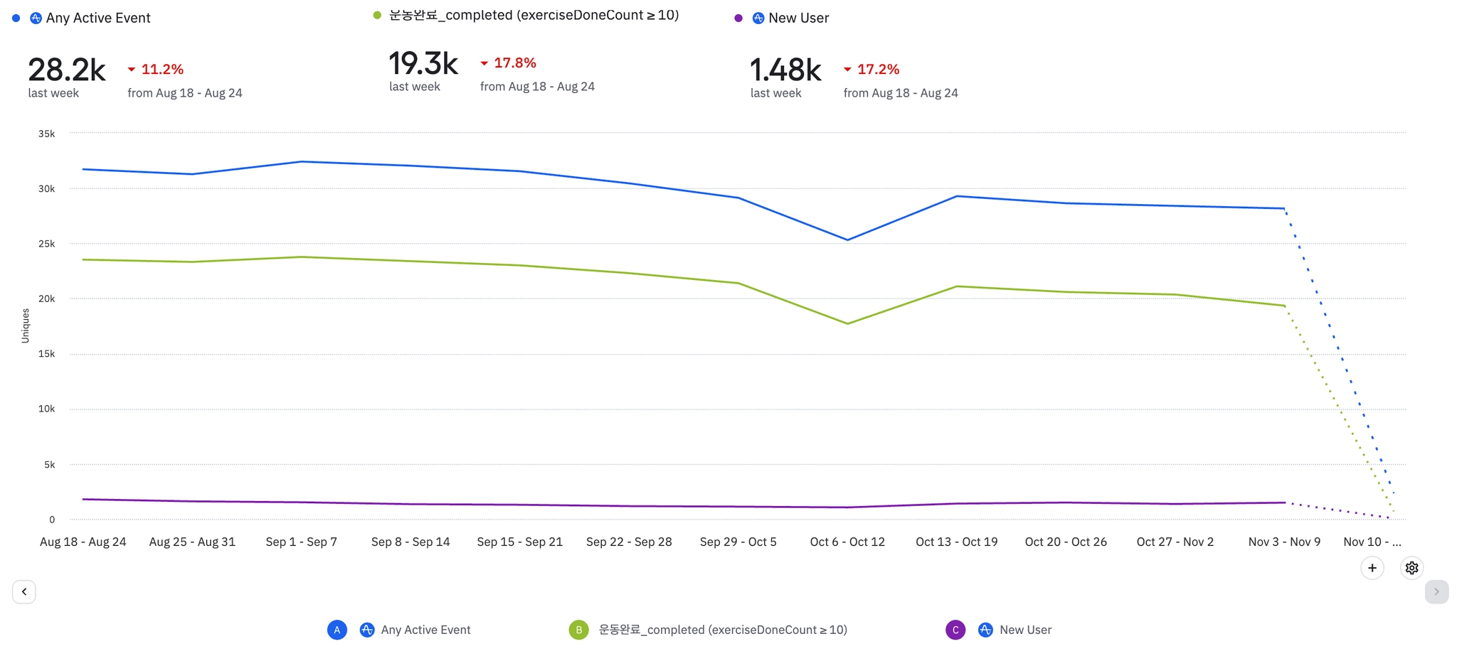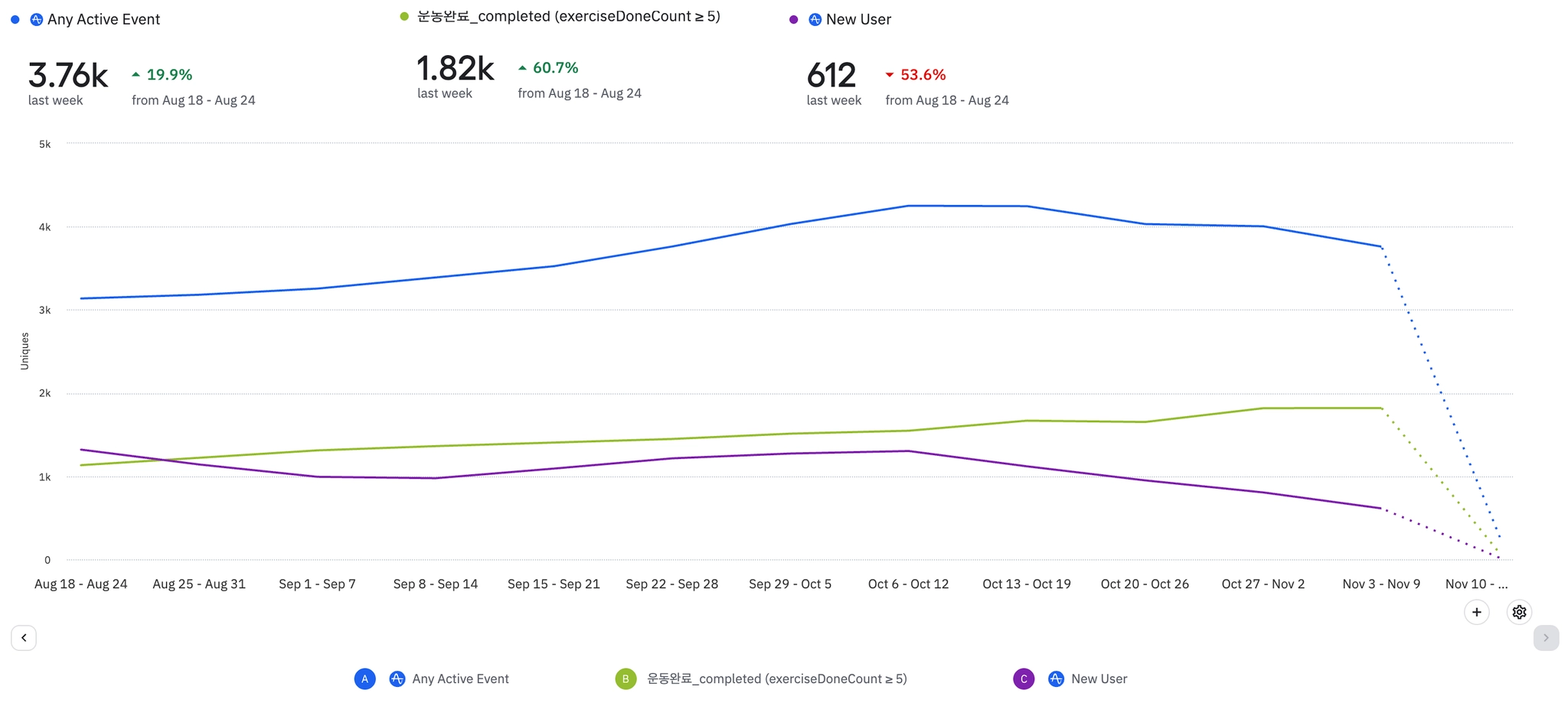 1주일에 3번이상 운동완료하는 유저(NSM)