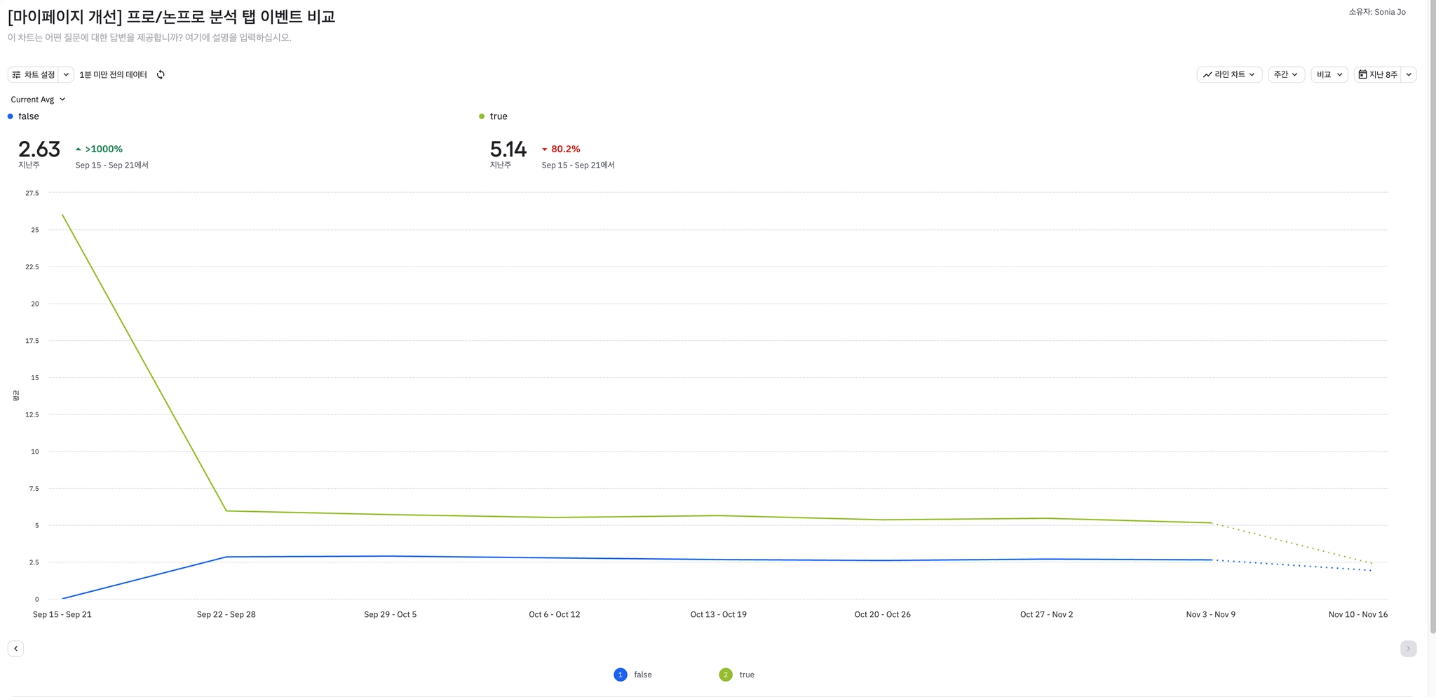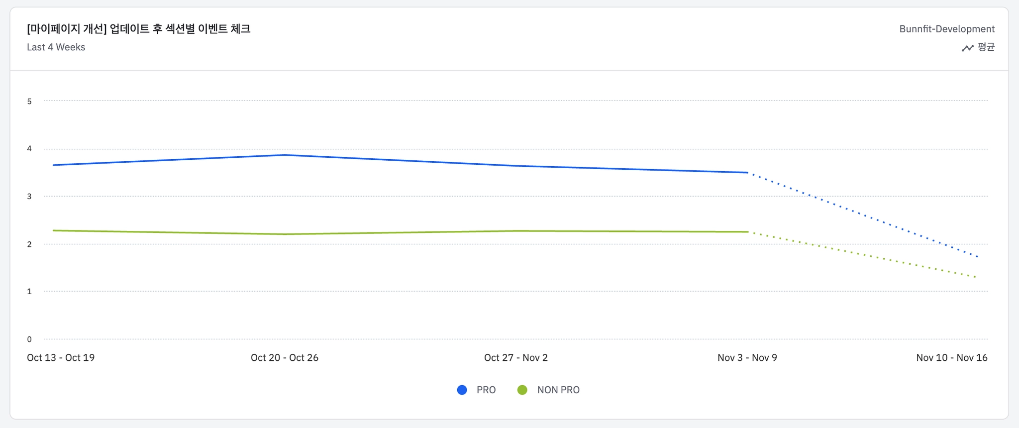 프로/논프로 섹션별 총합 주간 평균 클릭 횟수