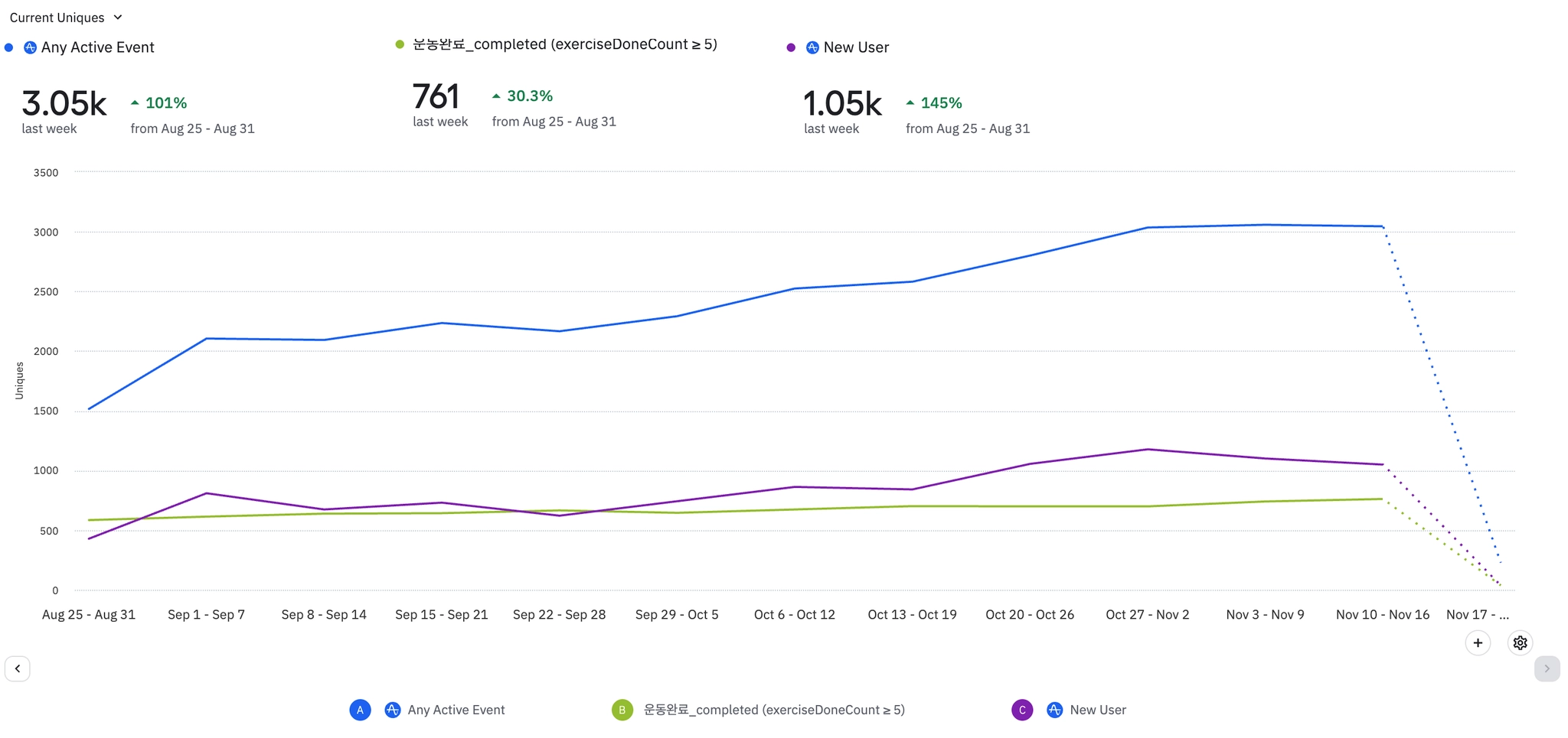 1주일에 3번이상 운동완료하는 유저(NSM)