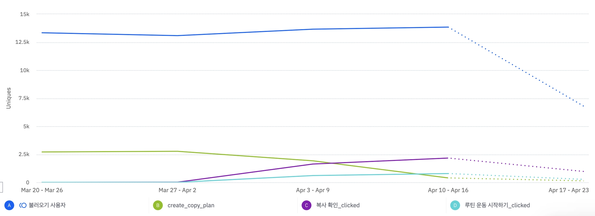루틴 사용 현황 - 불러오기, 복사, 루틴 사용 비율