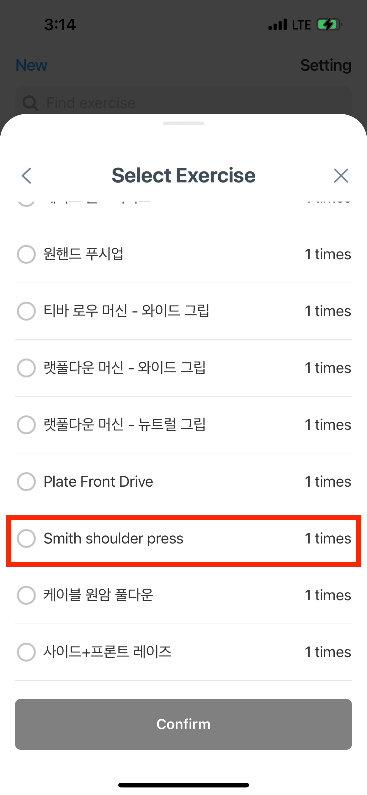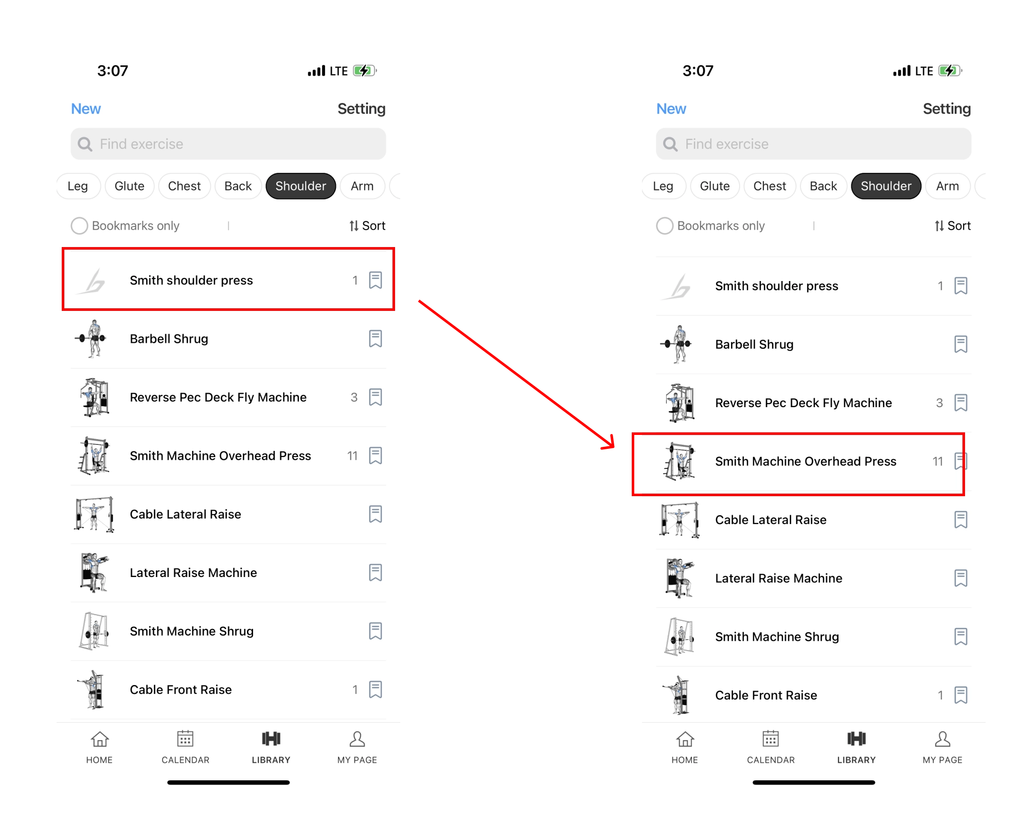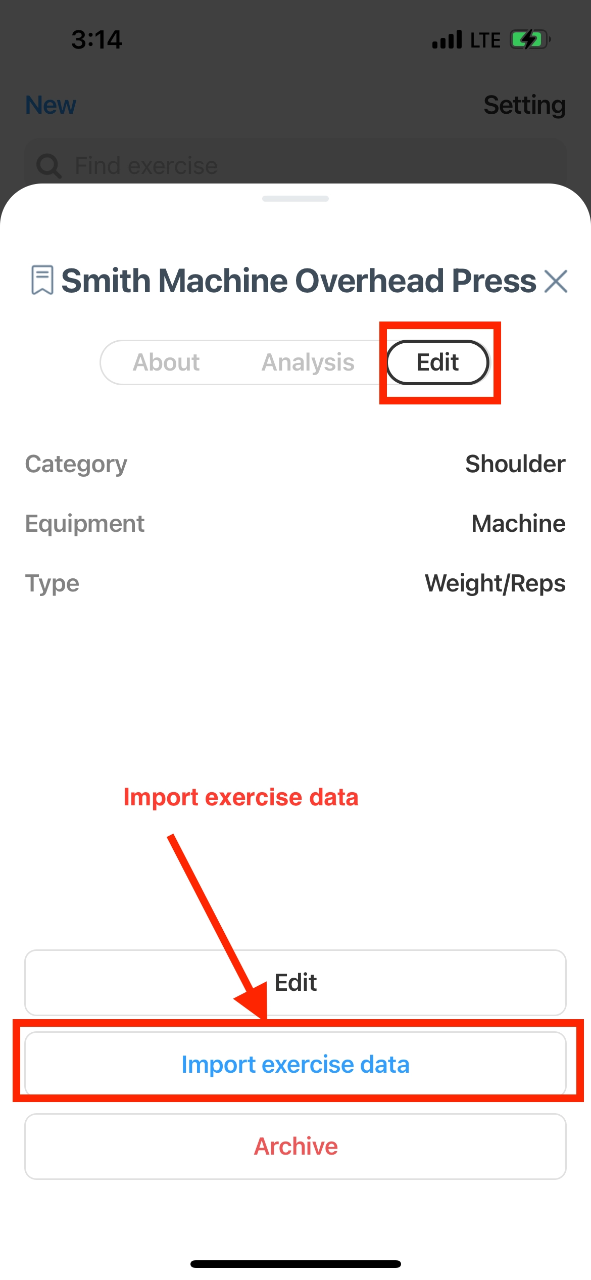Let’s move data from the “Smith shoulder press” I made to Smith machine overhead press that BurnFit added.