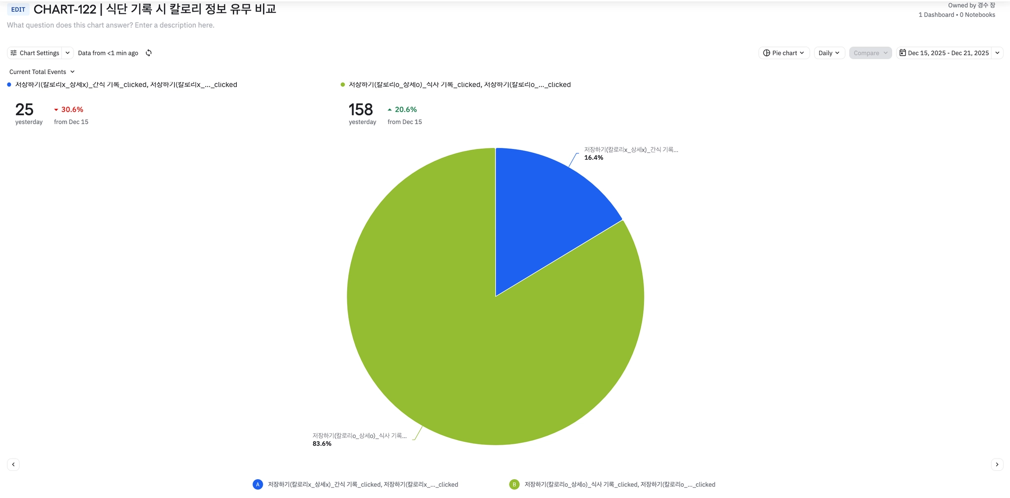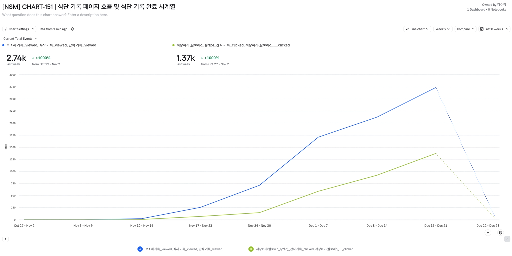 전반적으로 식단 기록 뷰 및 완료 이벤트 수가 증가하고 있는 추세이다.