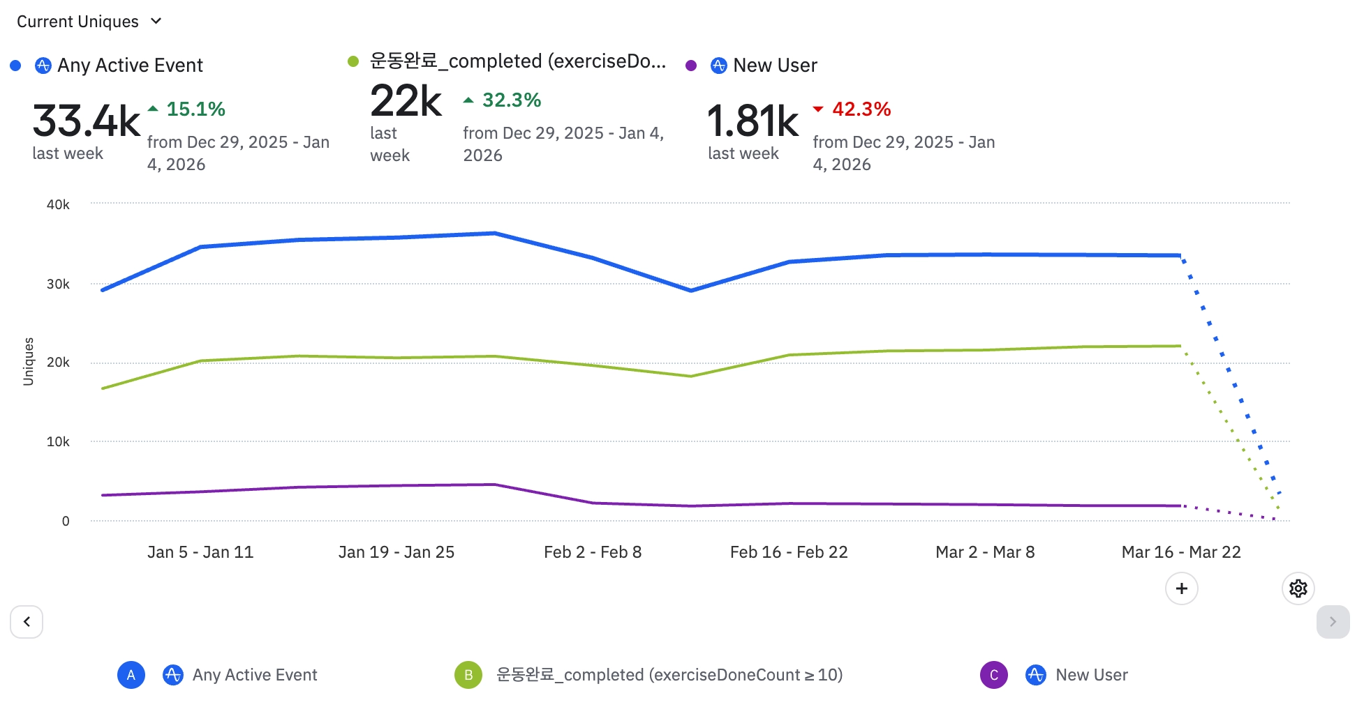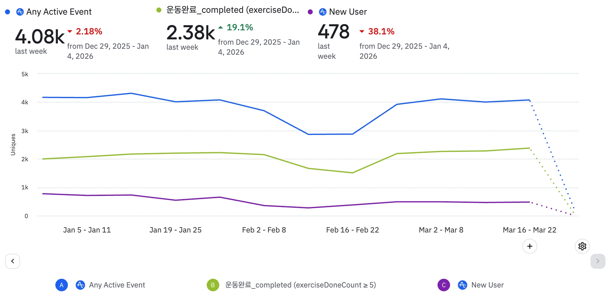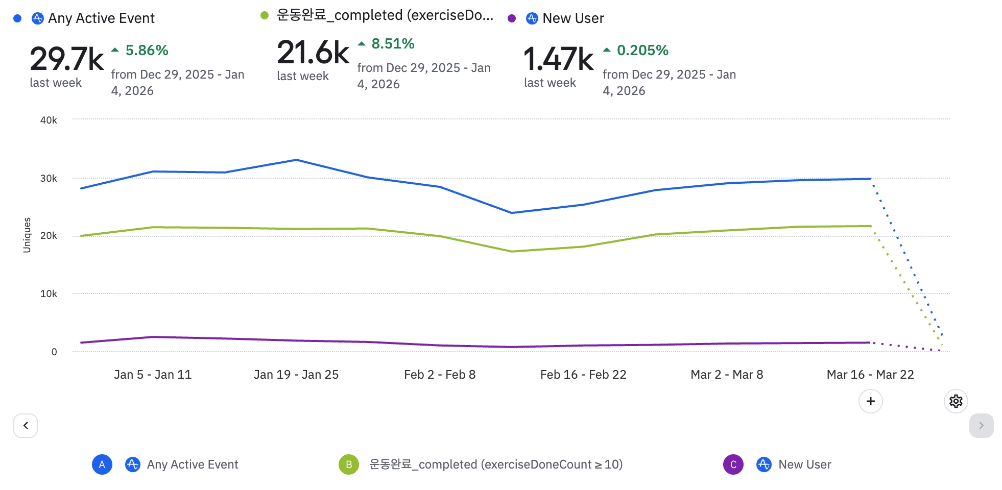 1주일에 3번이상 운동완료하는 유저(NSM)