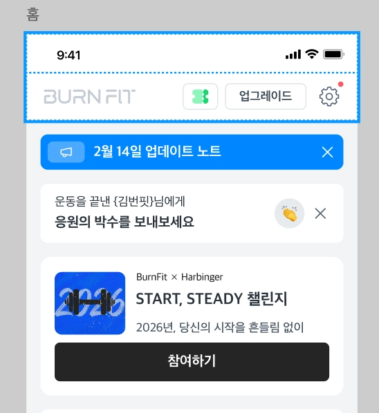 홈 페이지에 진입한 직후 응원 메시지 전송 안내 배너가 호출된 경우