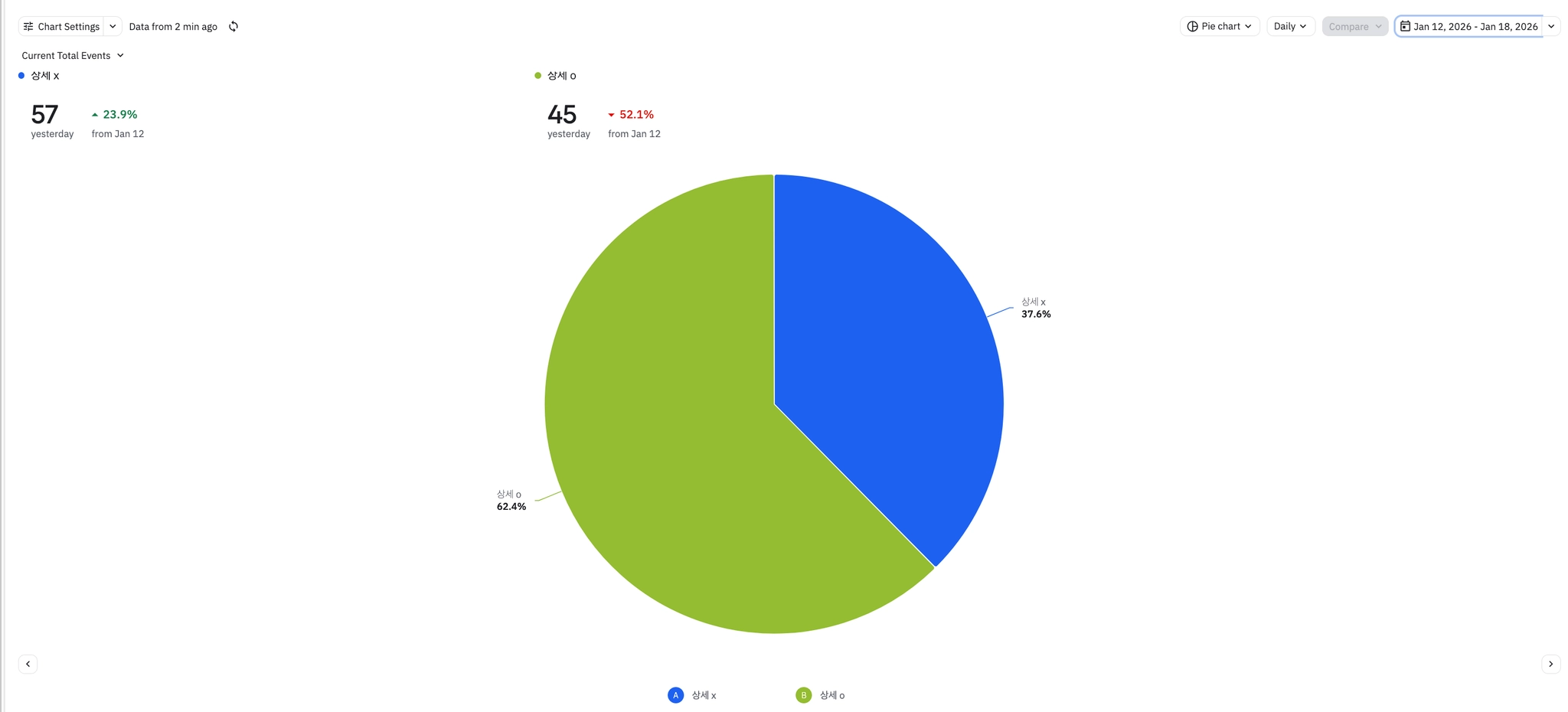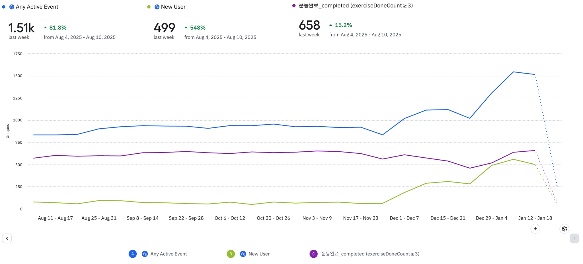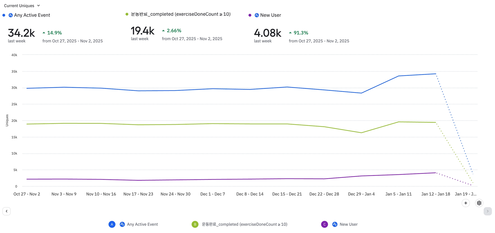 전반적으로 식단 기록 뷰 및 완료 이벤트 수가 증가하고 있는 추세이다.
