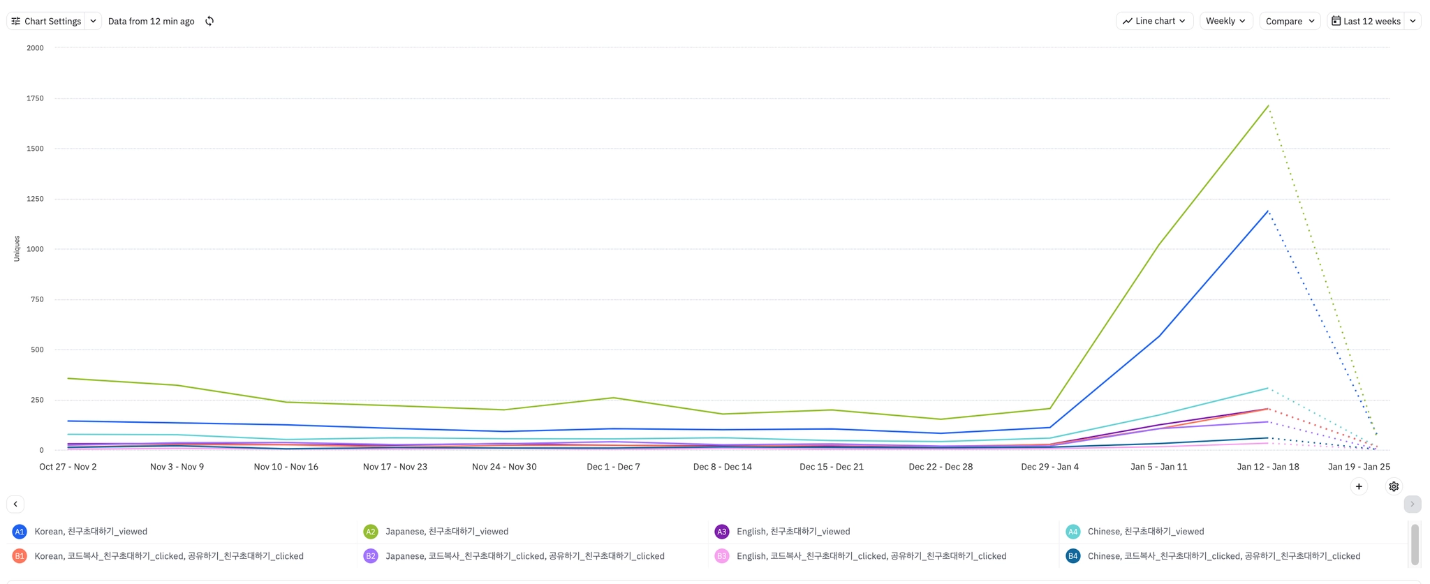 친구 초대 코드 입력 유저의 주간 리텐션https://app.amplitude.com/analytics/bunnit/chart/pw18hid5?linkingDashboardId=rmekhawl&sharingId=s6Gvg1N2친구 초대 코드 입력 유저의 주간 리텐션