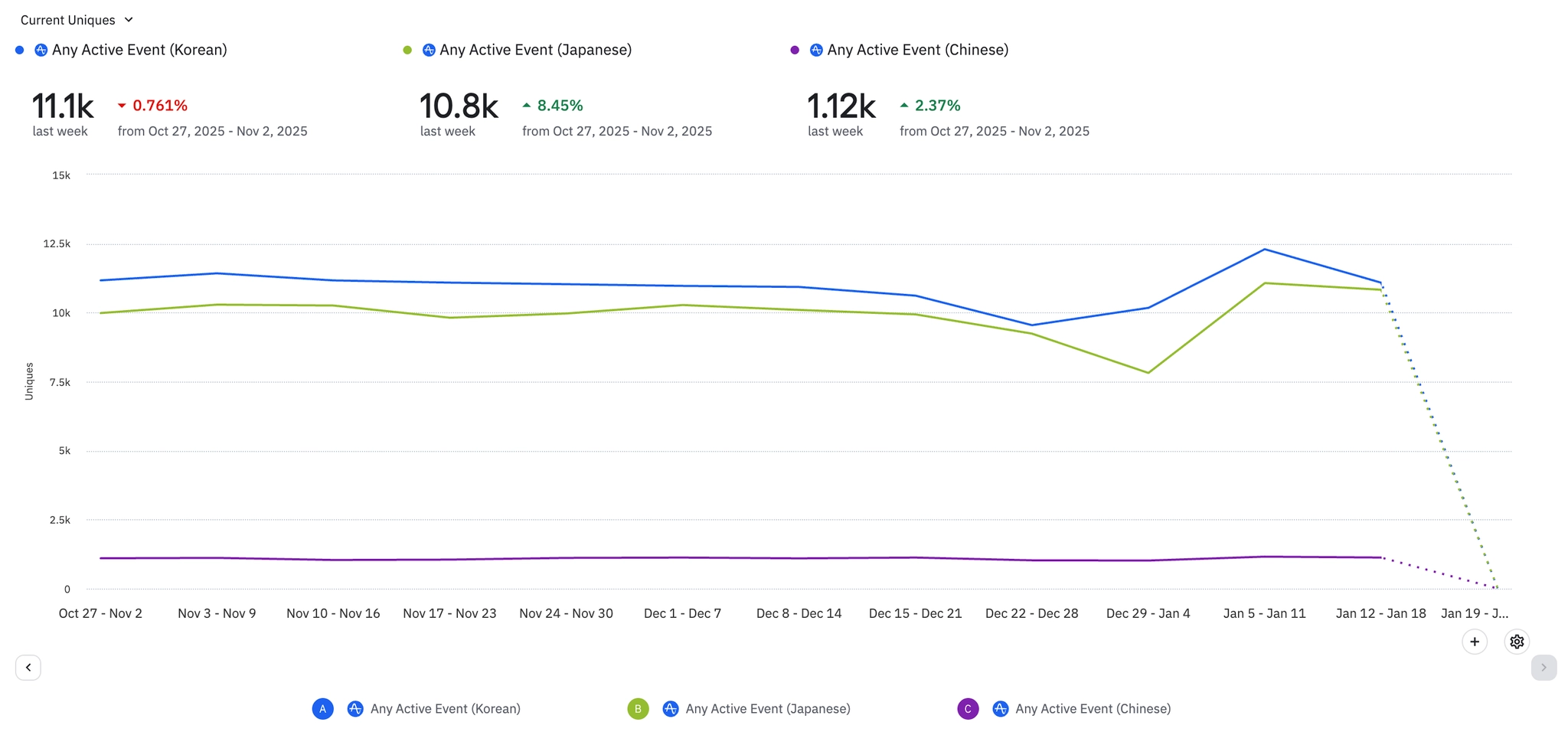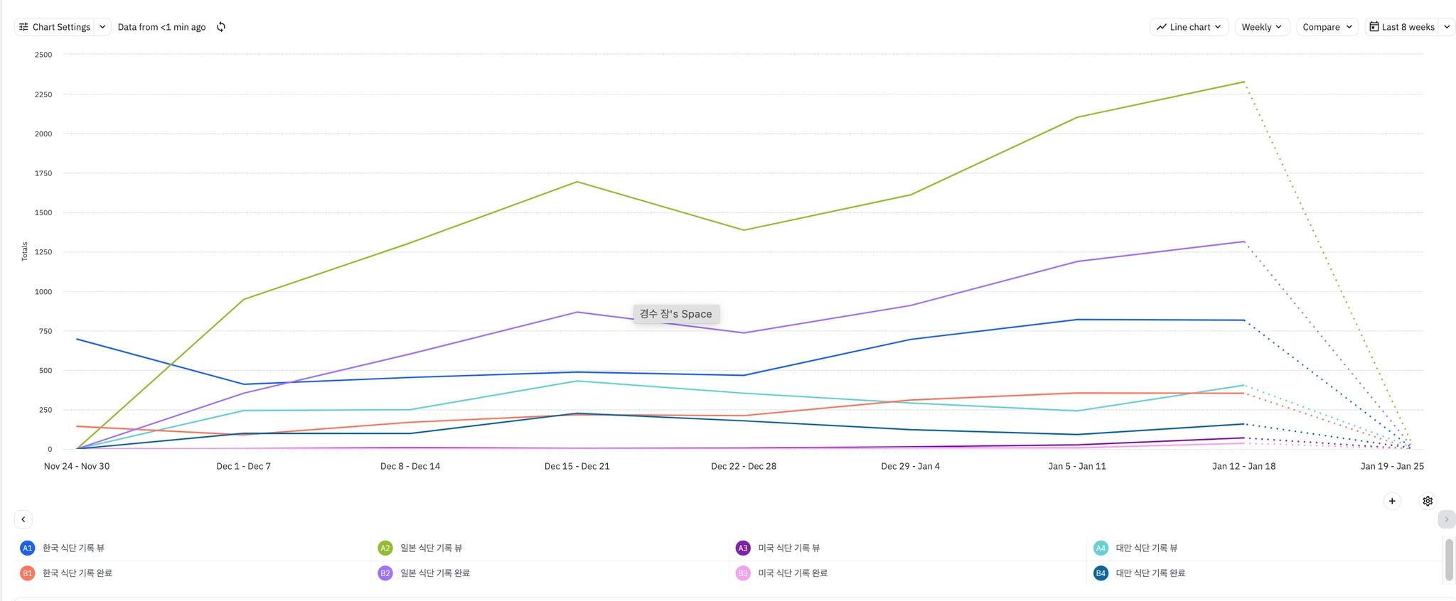 모수는 작지만 저번주 미국, 대만쪽에서 식단 관련 트레커가 눈에 띄게 증가하였다.