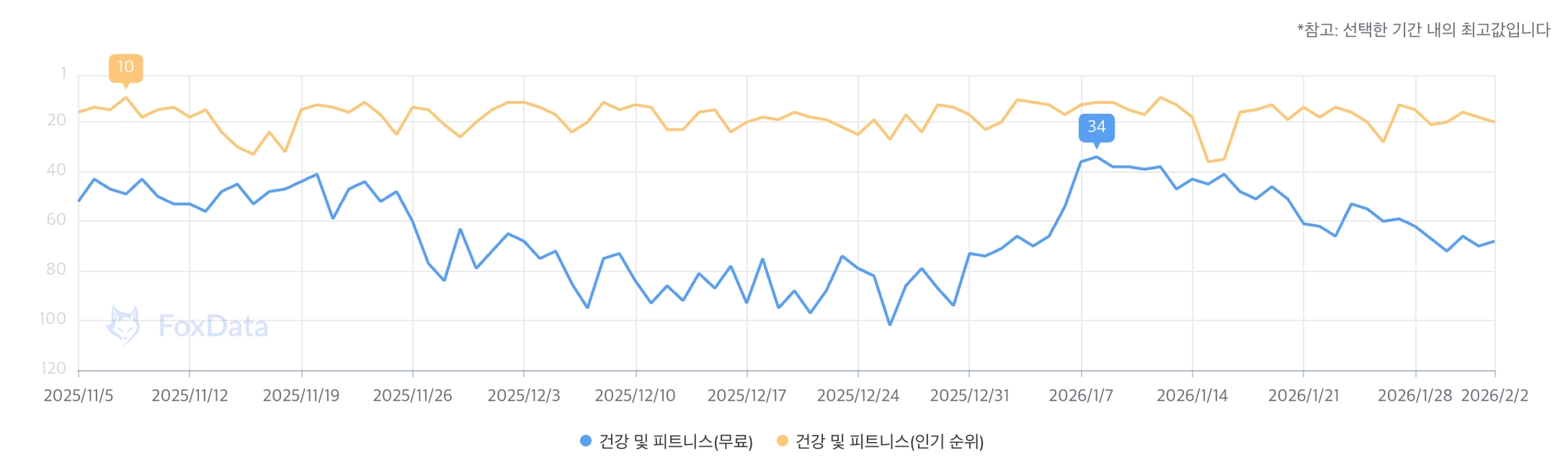 한국: iOS 68위 / AOS 116위