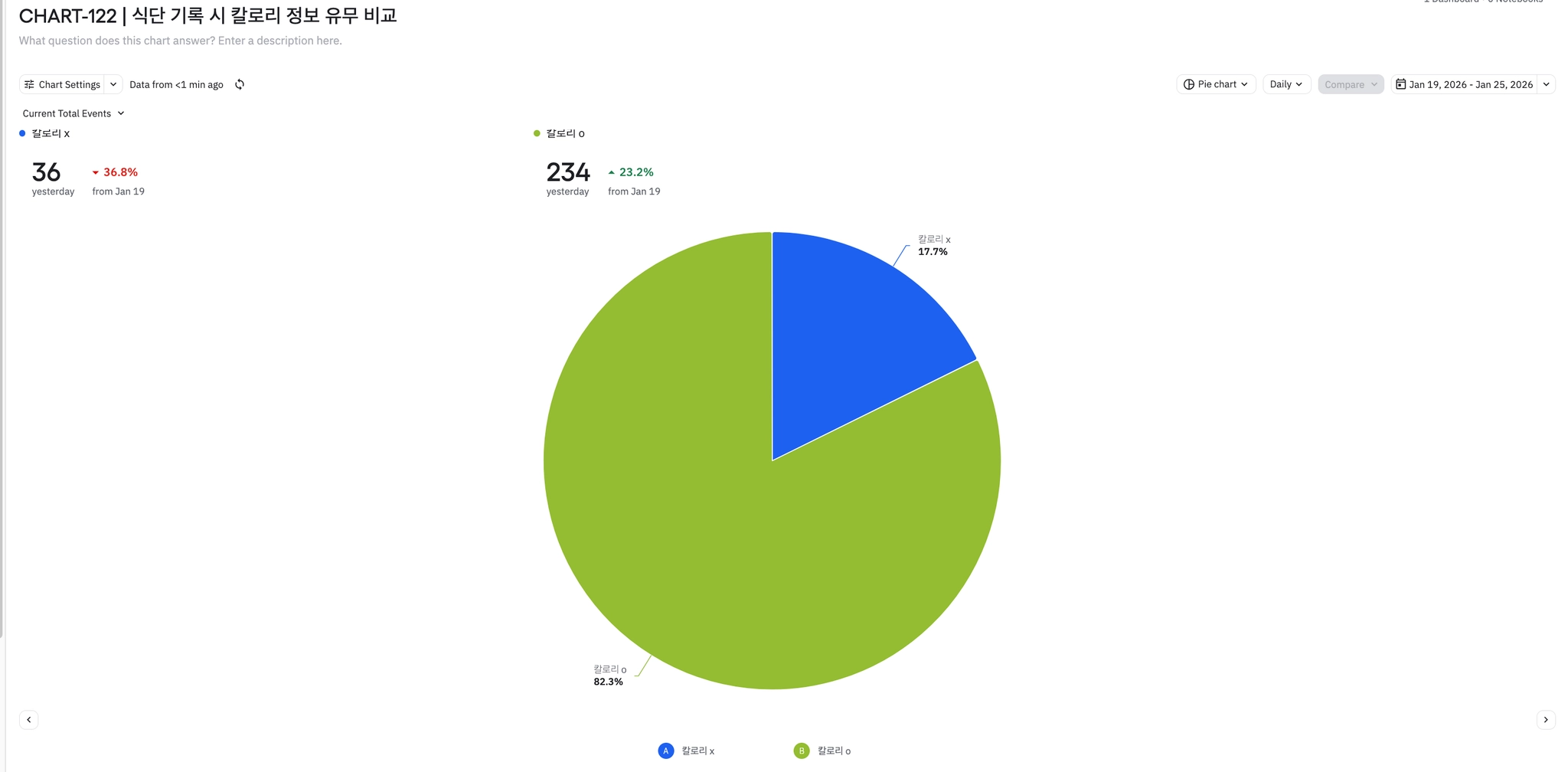 식단 기록 시 칼로리 정보 유무 비교