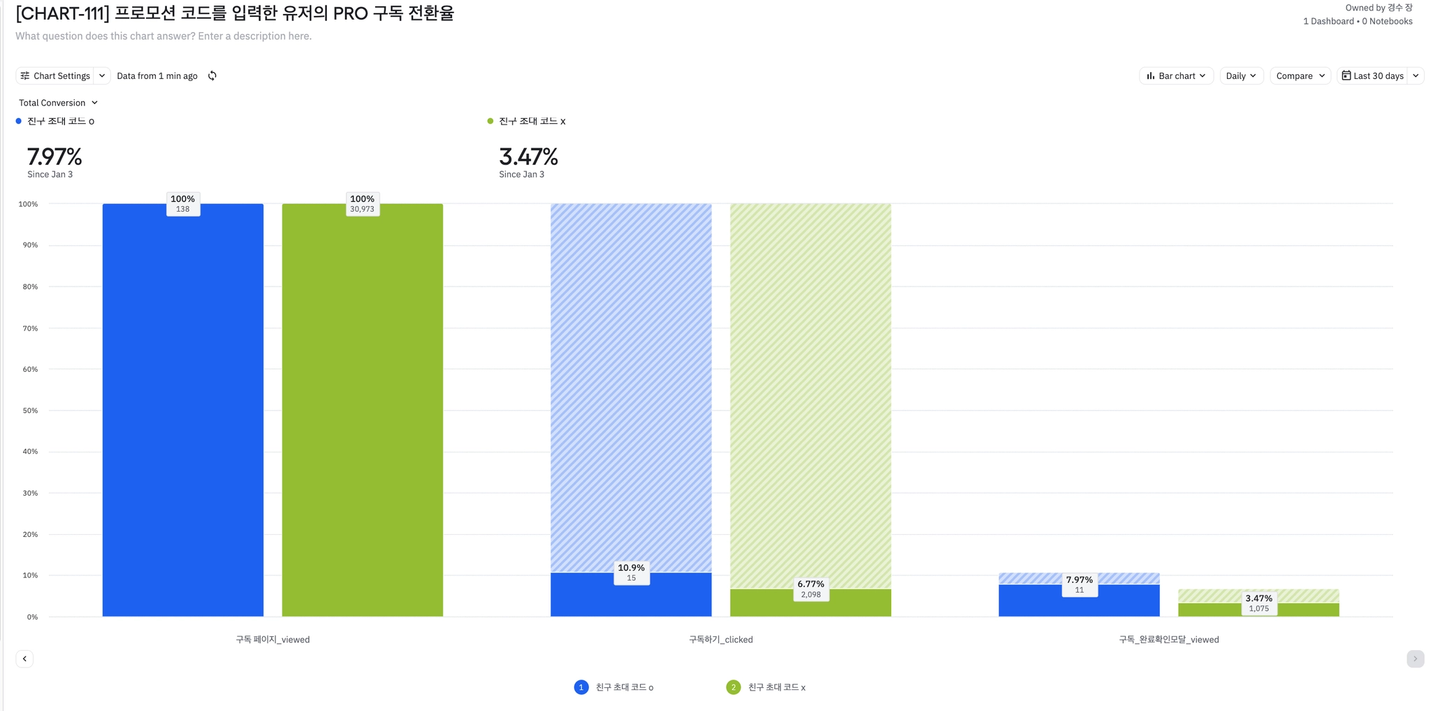 프로모션 코드를 입력한 유저의 PRO 구독 전환율
