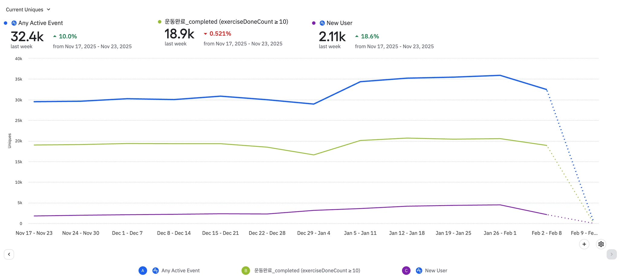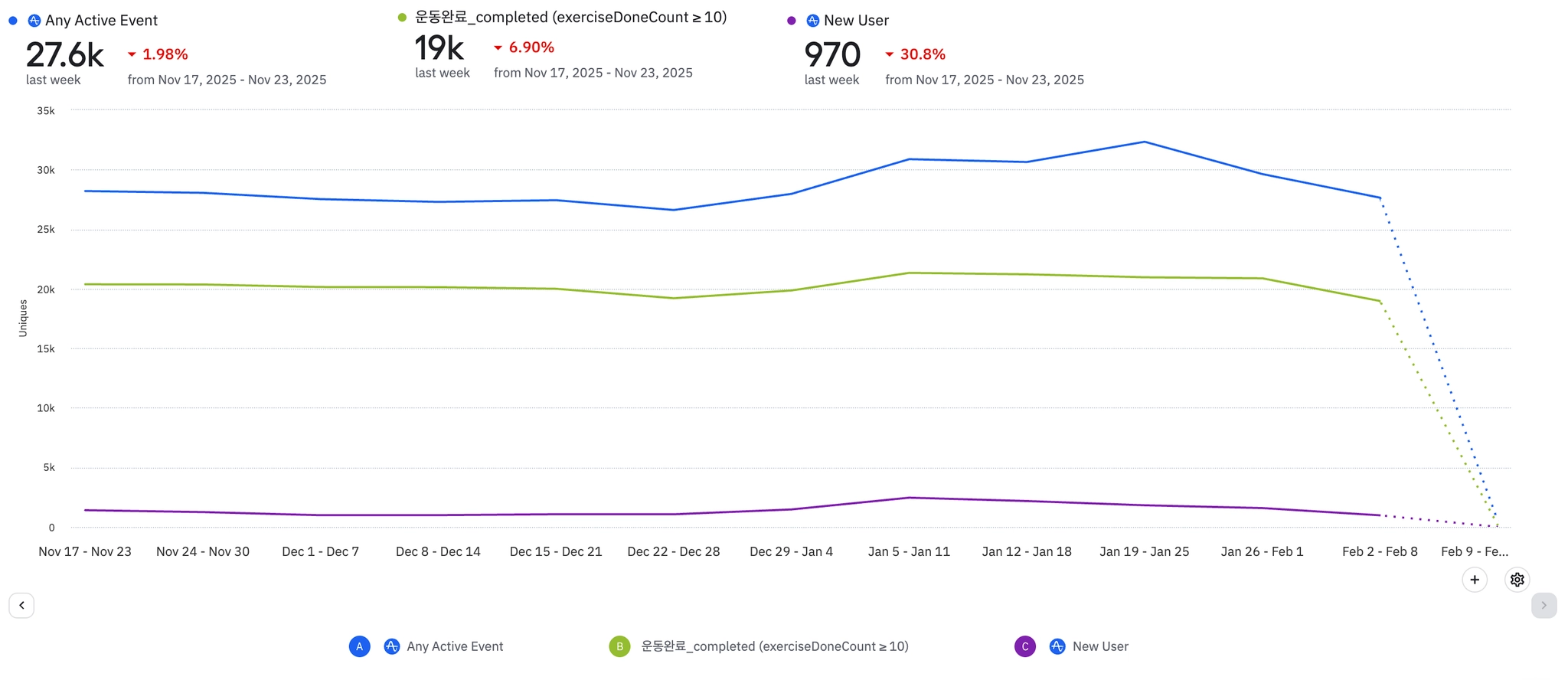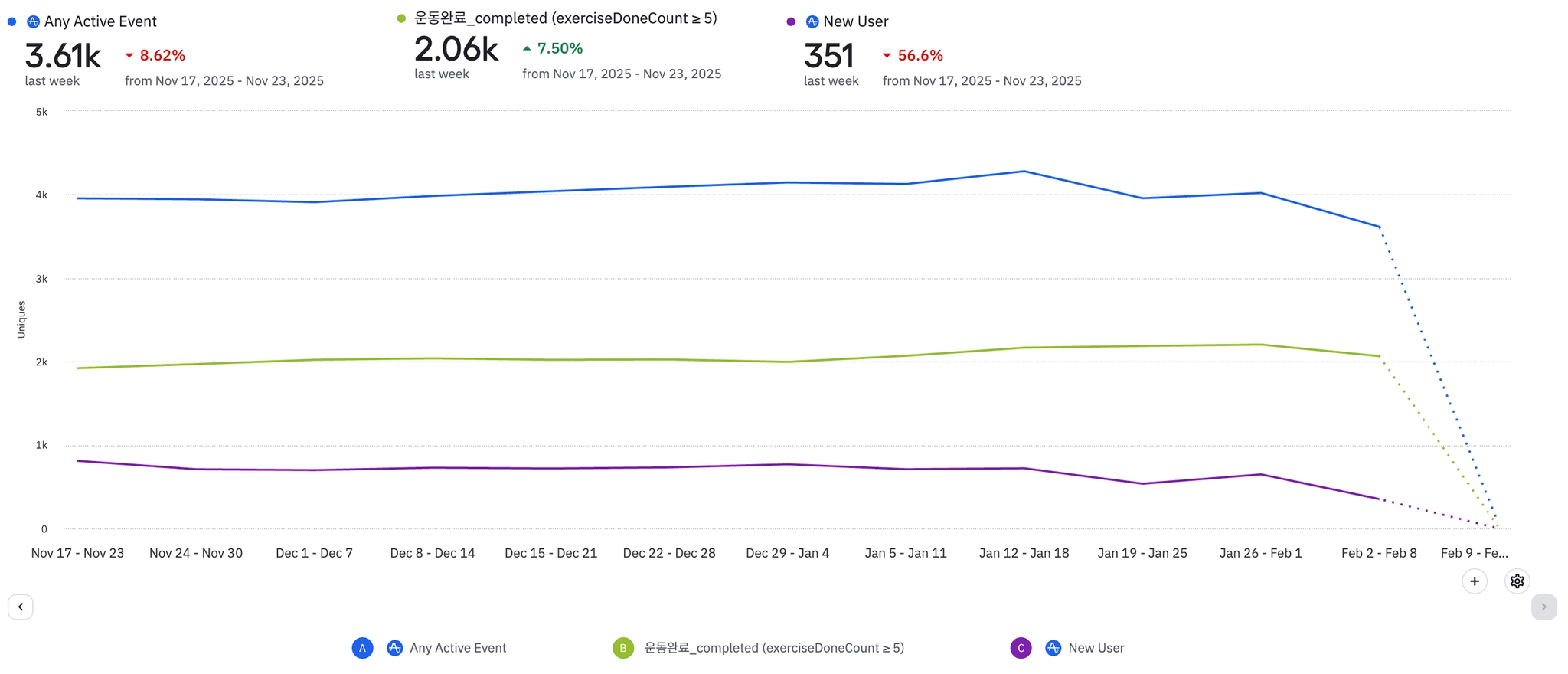 1주일에 3번이상 운동완료하는 유저(NSM)
