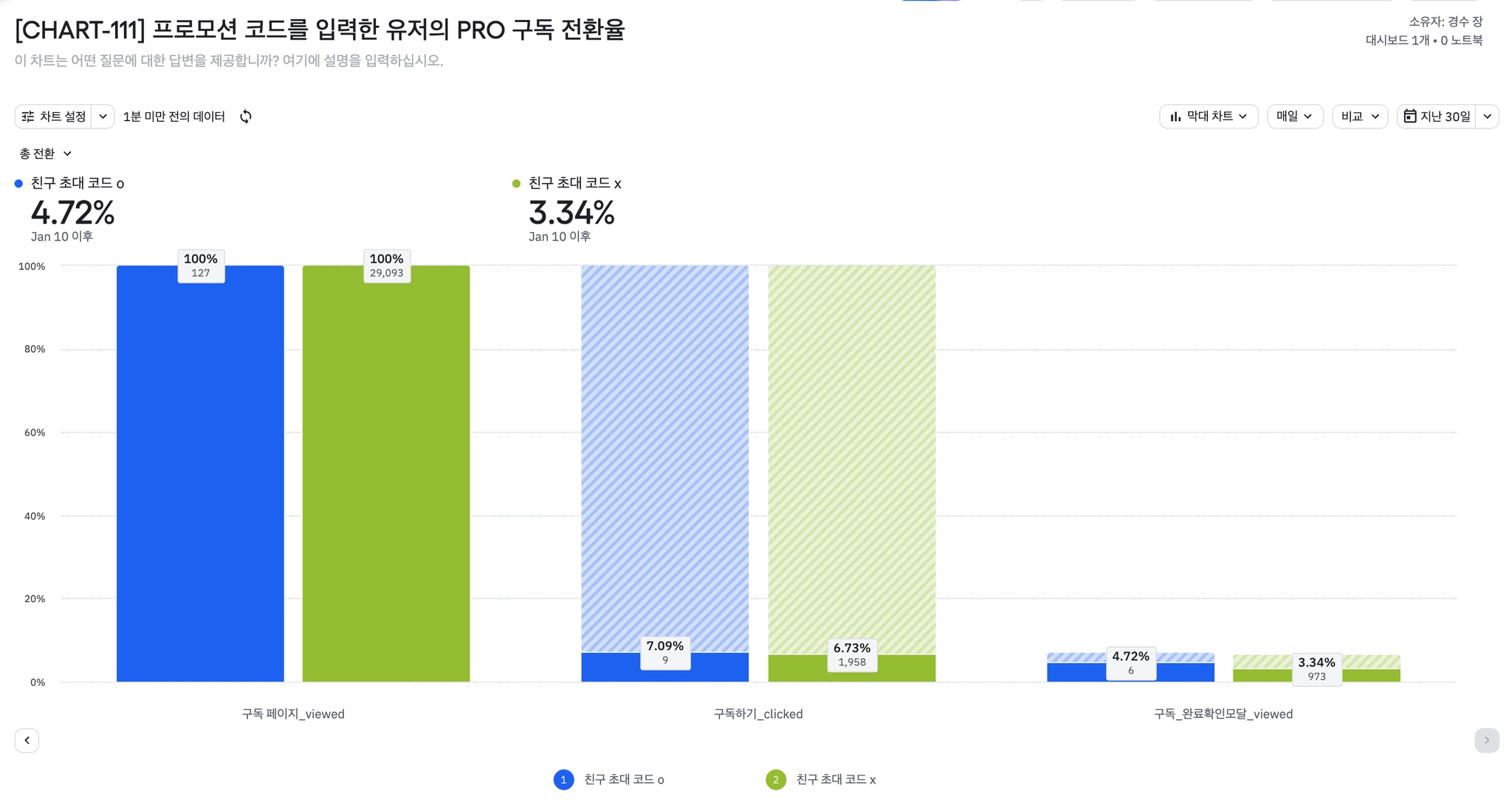 프로모션 코드를 입력한 유저의 PRO 구독 전환율