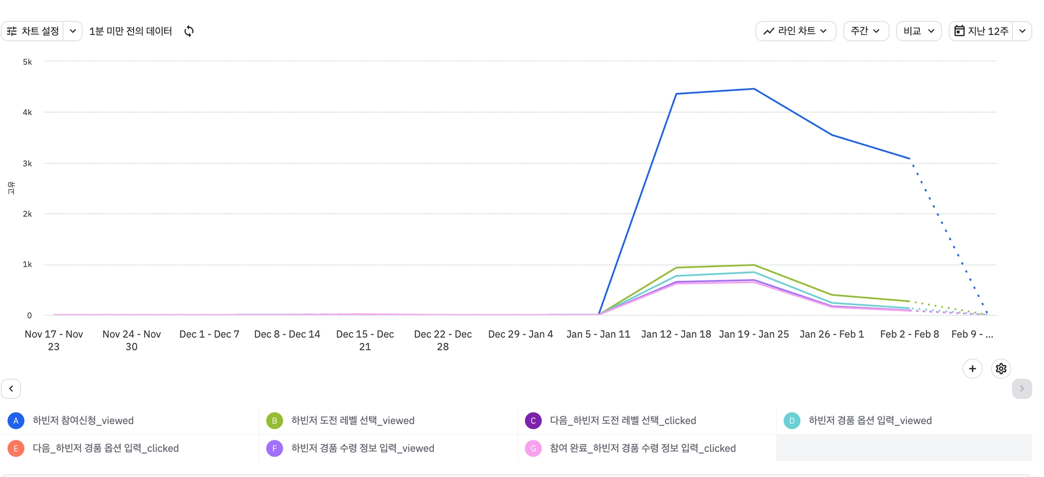 기간 | 01.12~01.18 | 01.19~01.25 | 01.26~02.01 | 02.02~02.08 |
