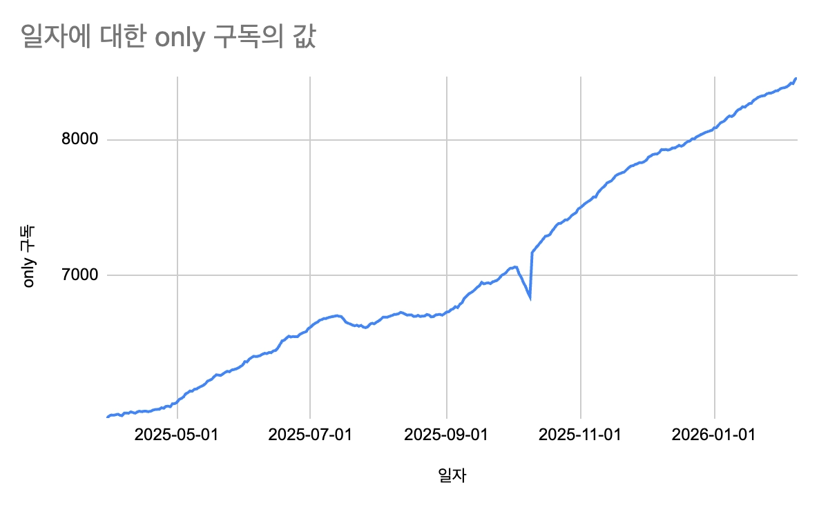주차별 신규 구독(증가 - 한국 14%, 일본 86%)