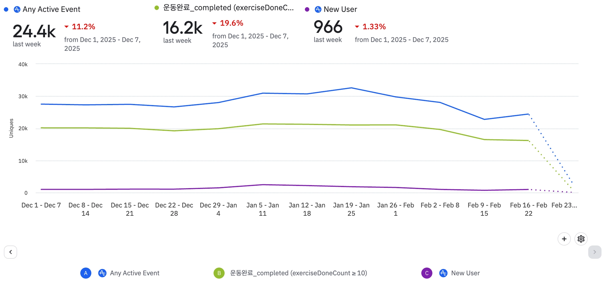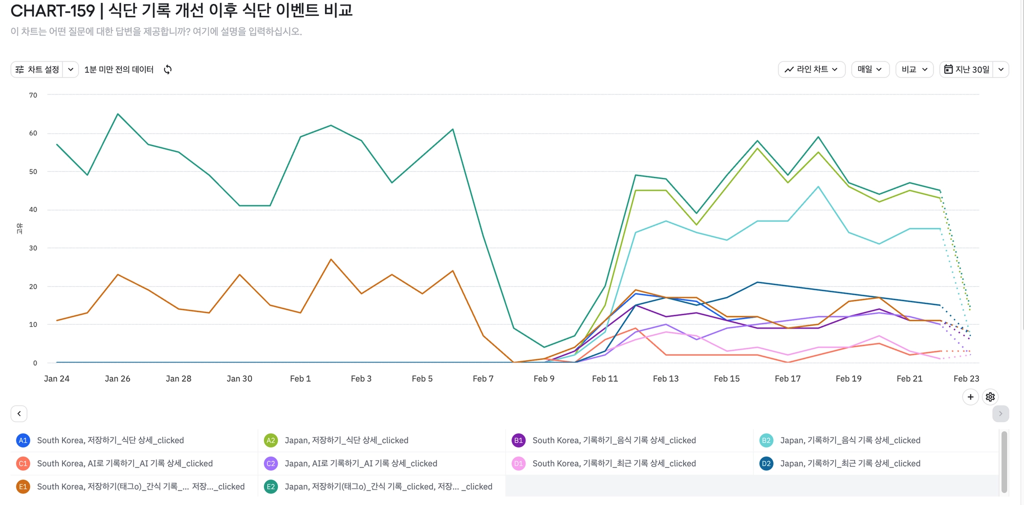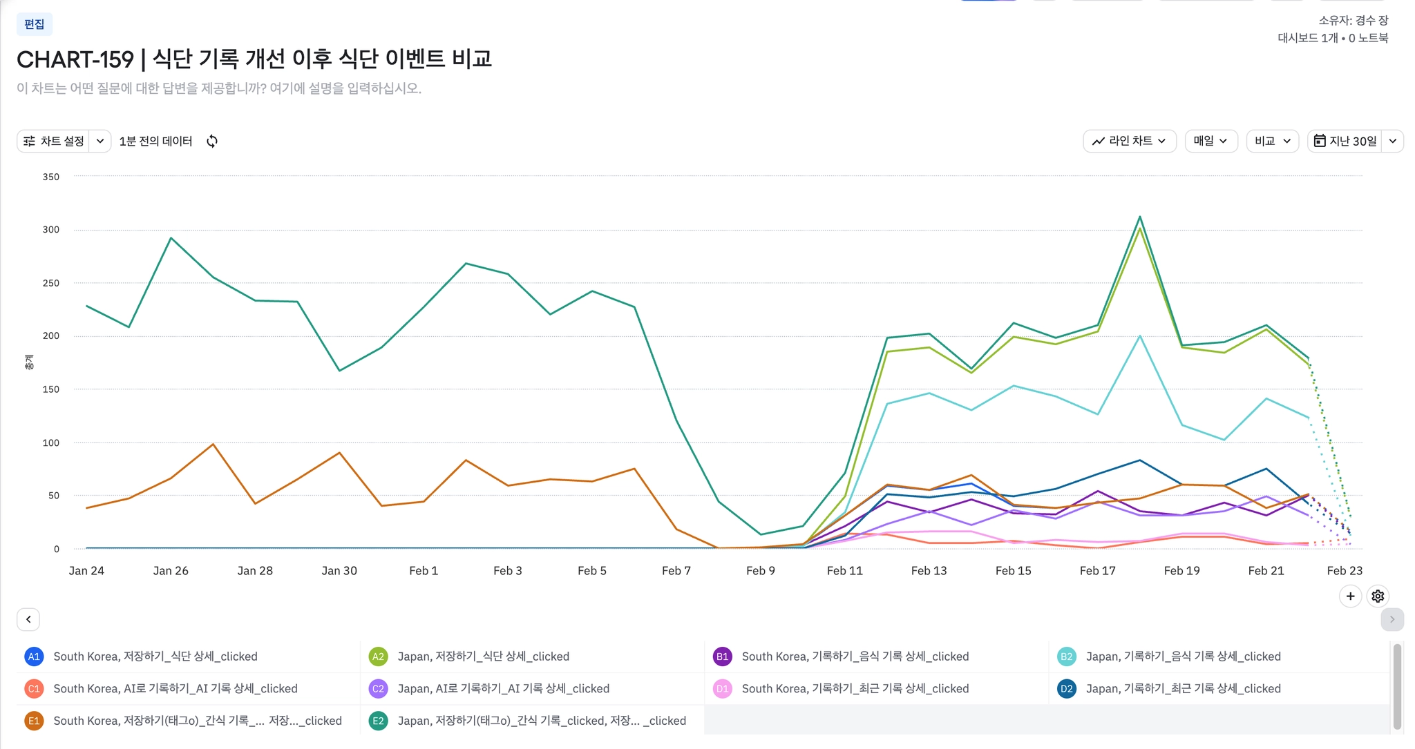 2월 1일 기준 일간 Paid 집행액 90% 감소