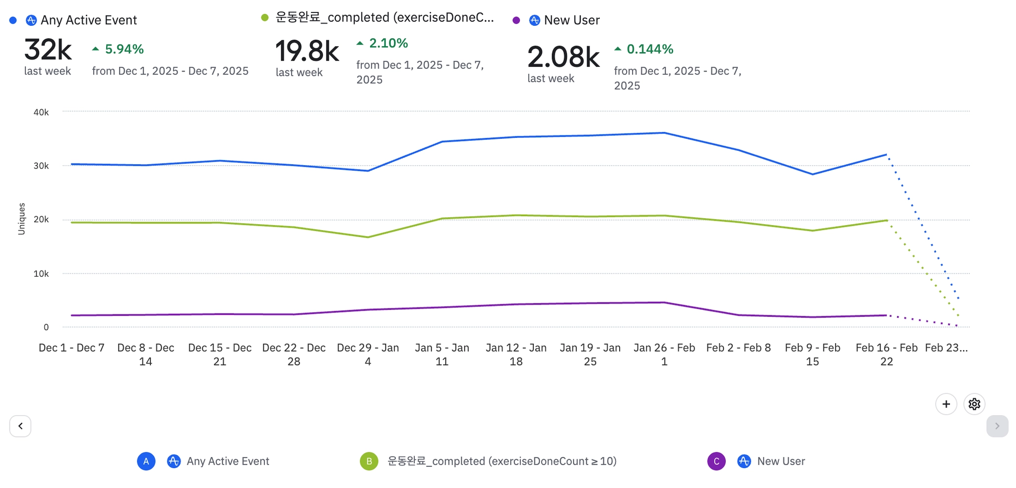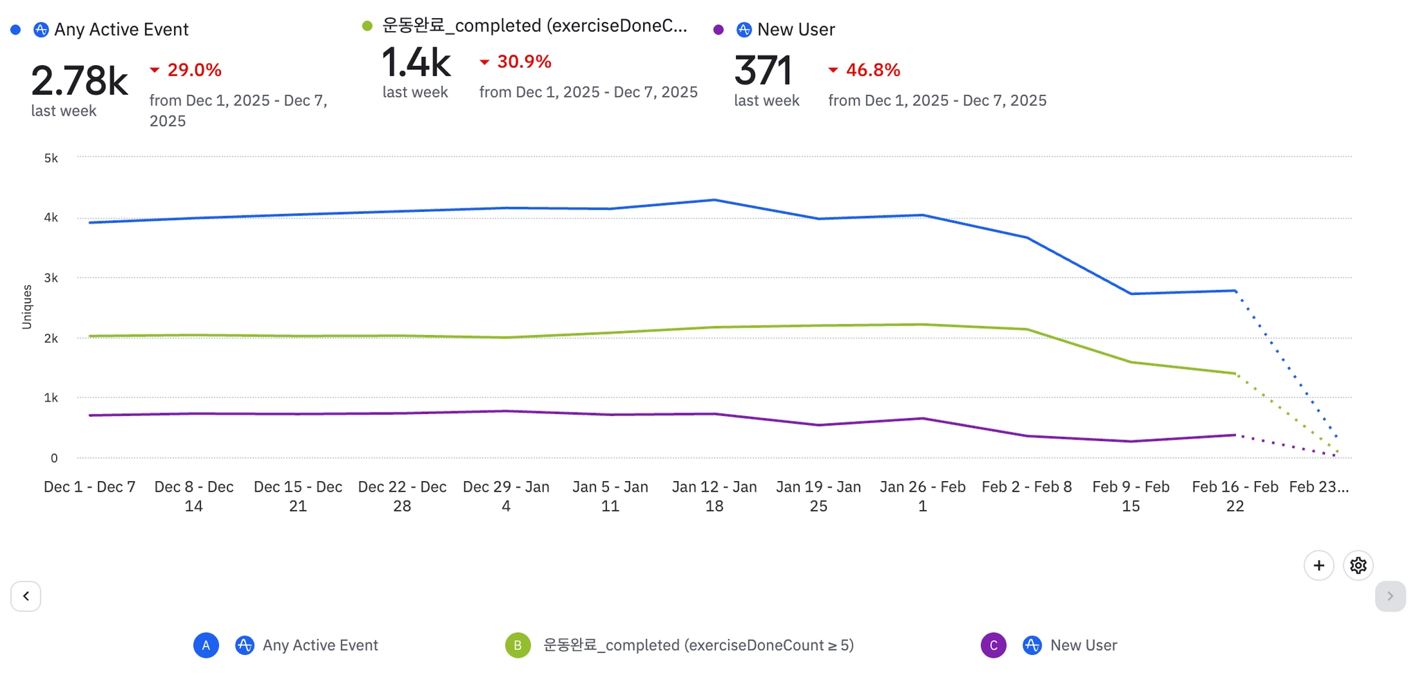 1주일에 3번이상 운동완료하는 유저(NSM)