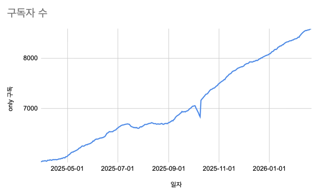 구독자 수: 8,649명 (+0.5% )