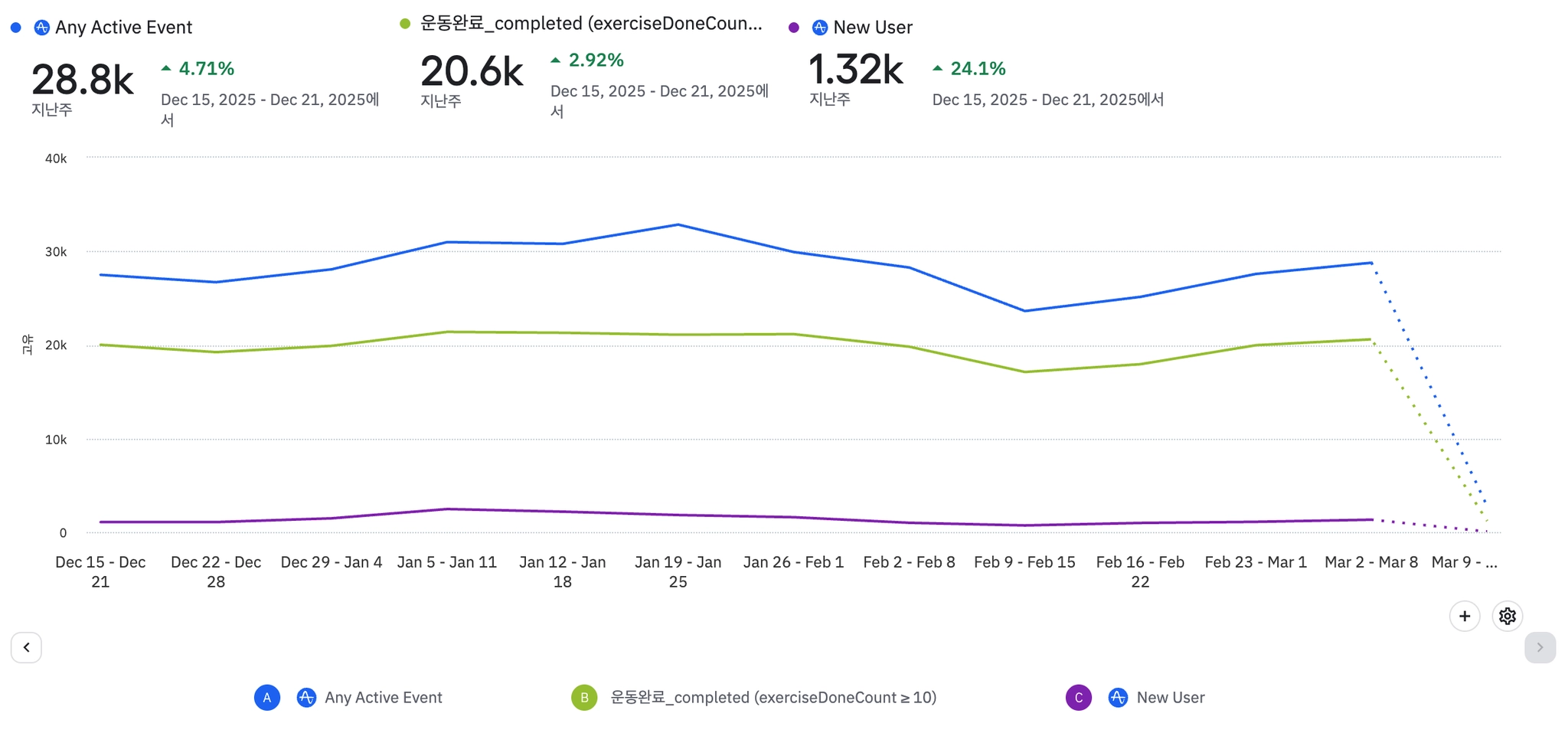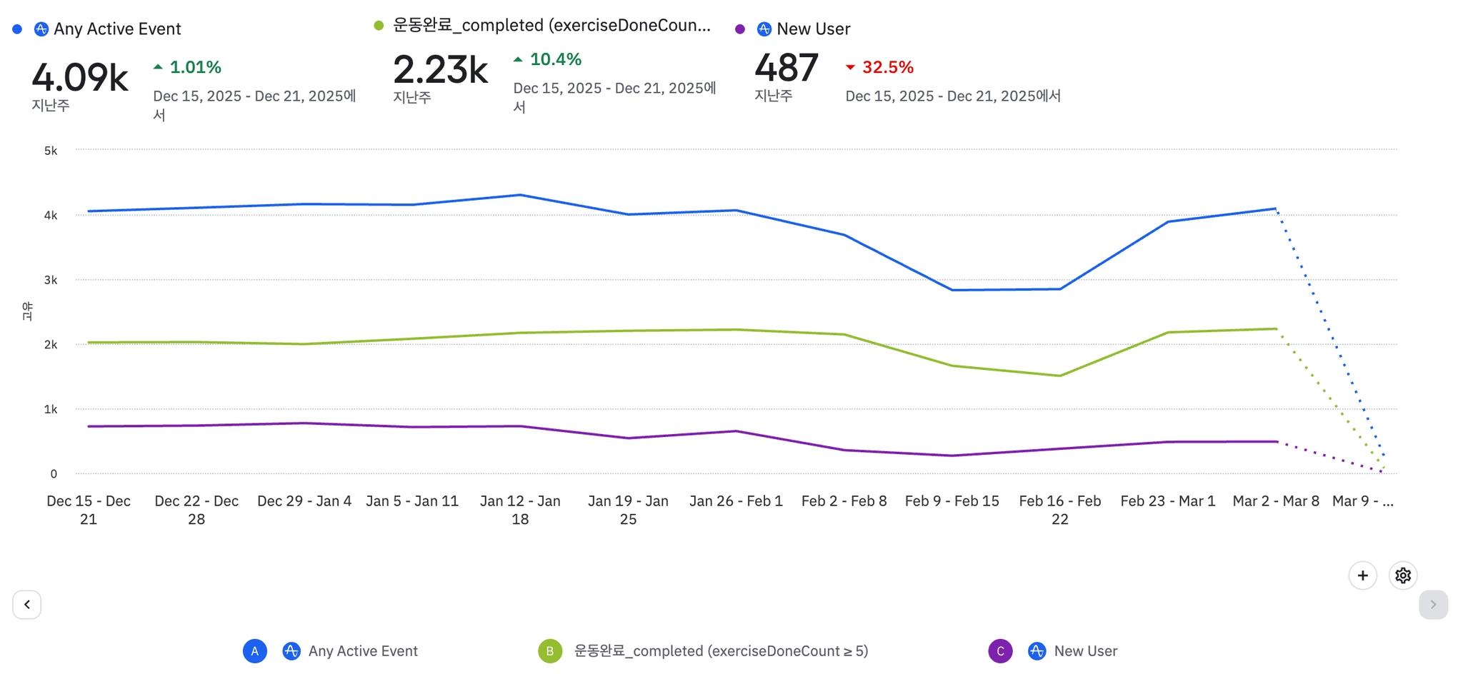 1주일에 3번이상 운동완료하는 유저(NSM)