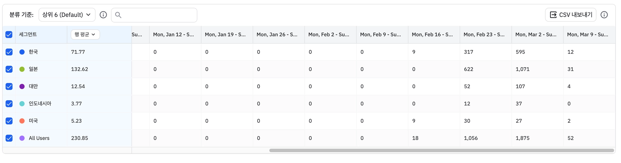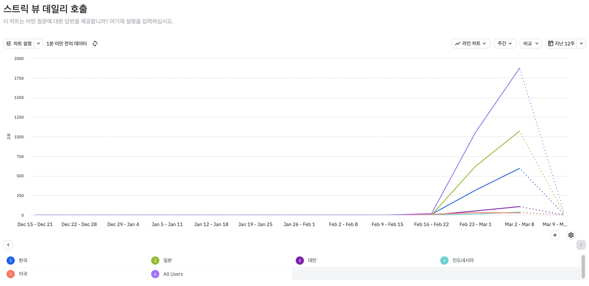 주차별 신규 설치(국가별)