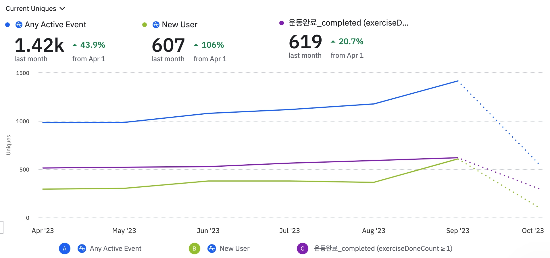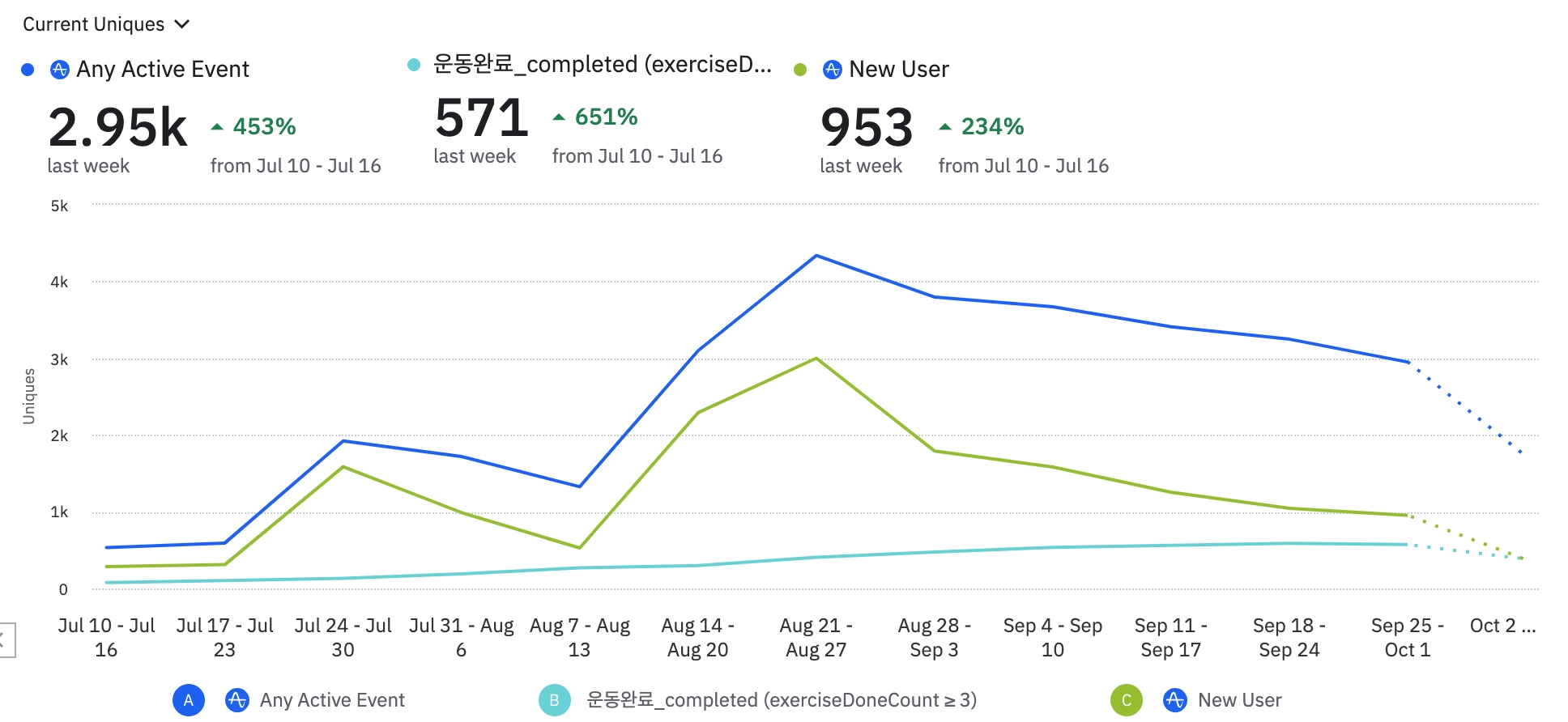 운동 완료대비 루틴 운동 시작 비율: 6.9% → 7.0% → 7.1%