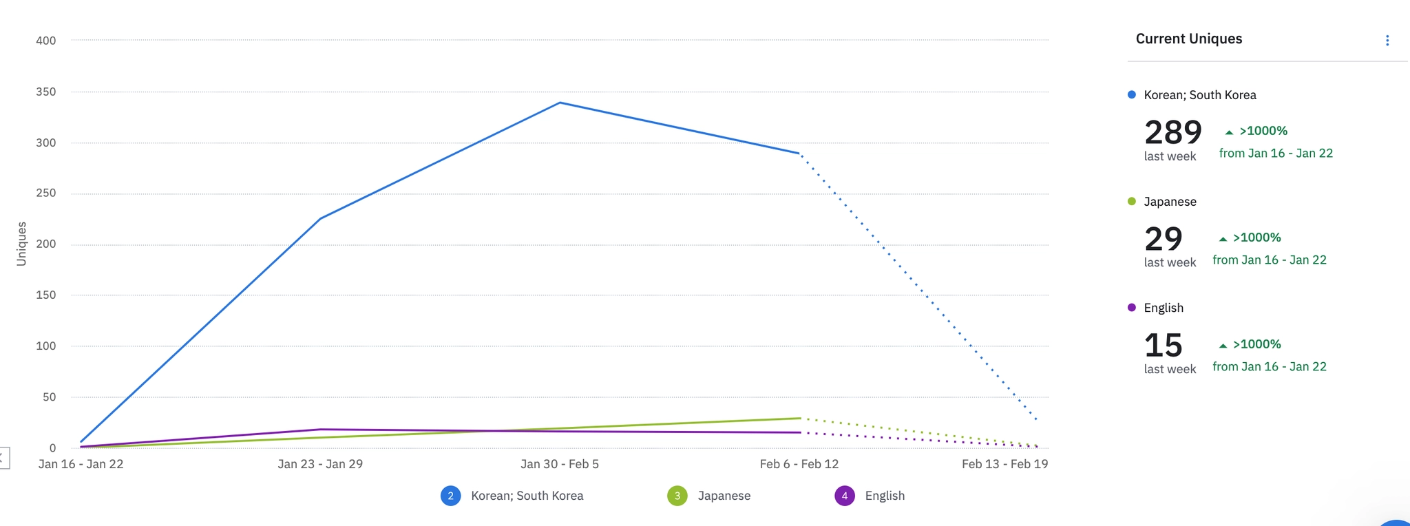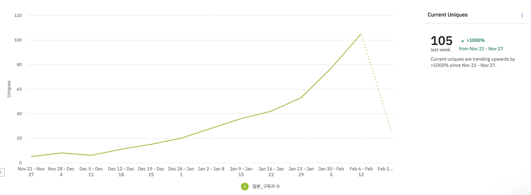 일본 유튜버 진행으로 지난주 대비 organic 606명 상승.