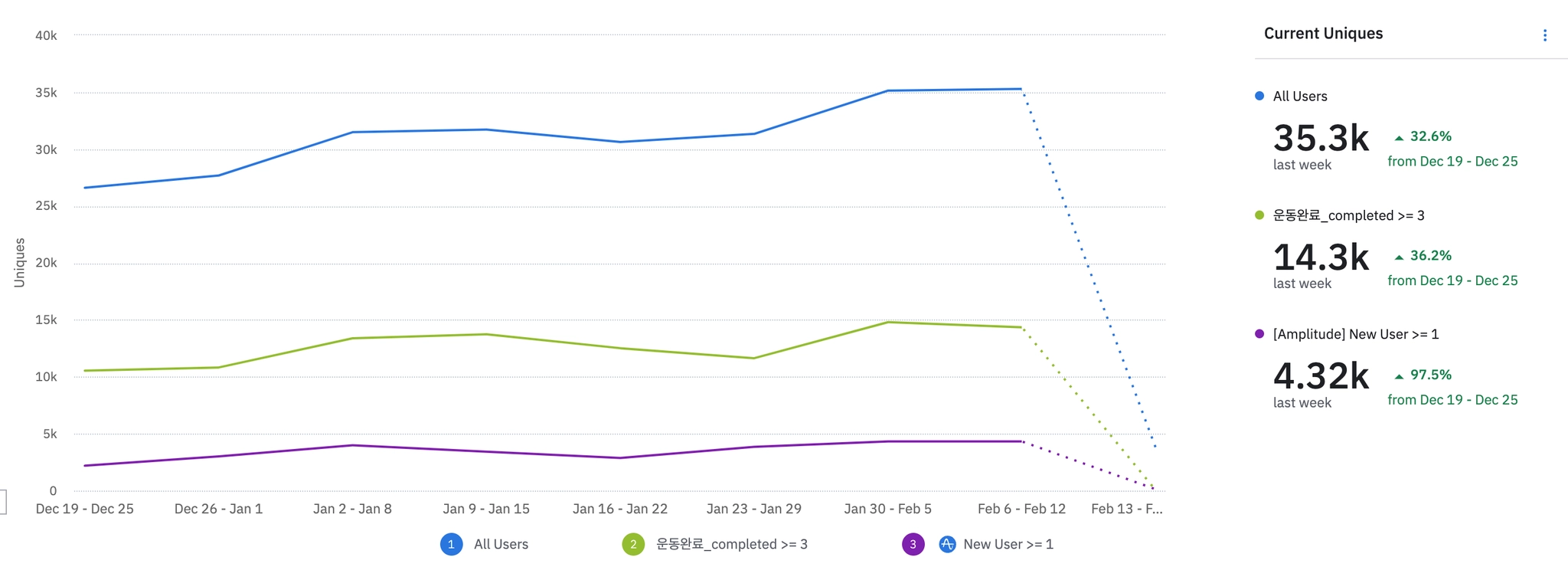 1월 3주차 | 2083 | ₩35,000 | 613 | ₩666,904 | 261 | 76.32% | 352 | 90.72% | ||