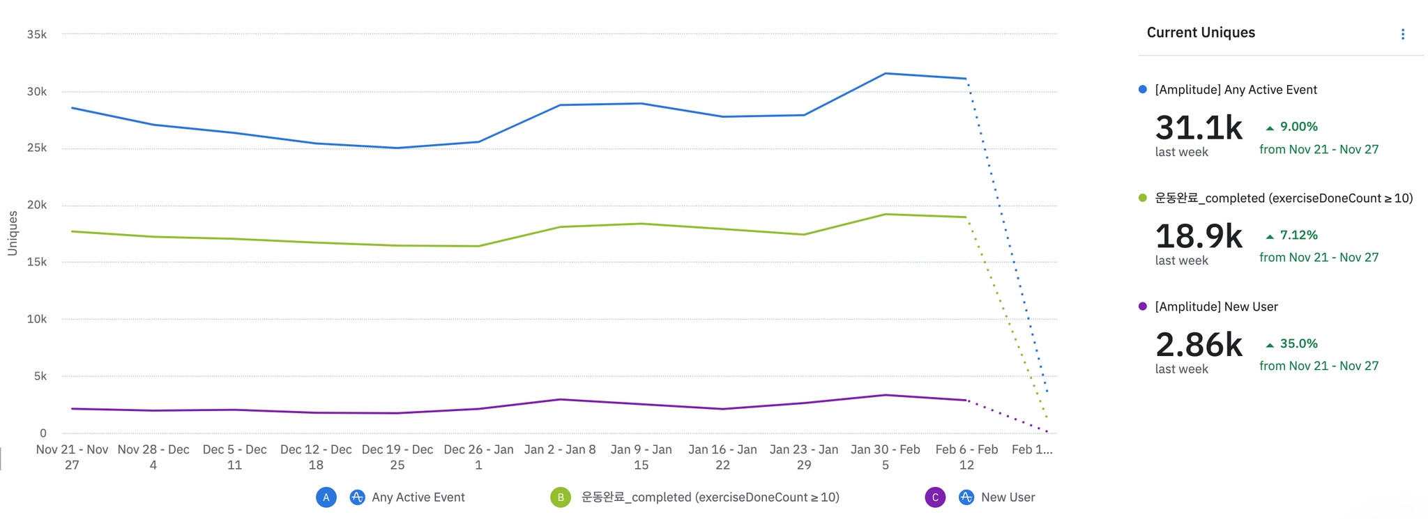 N.S.M - 일주일에 운동완료 3회이상한 유저 숫자