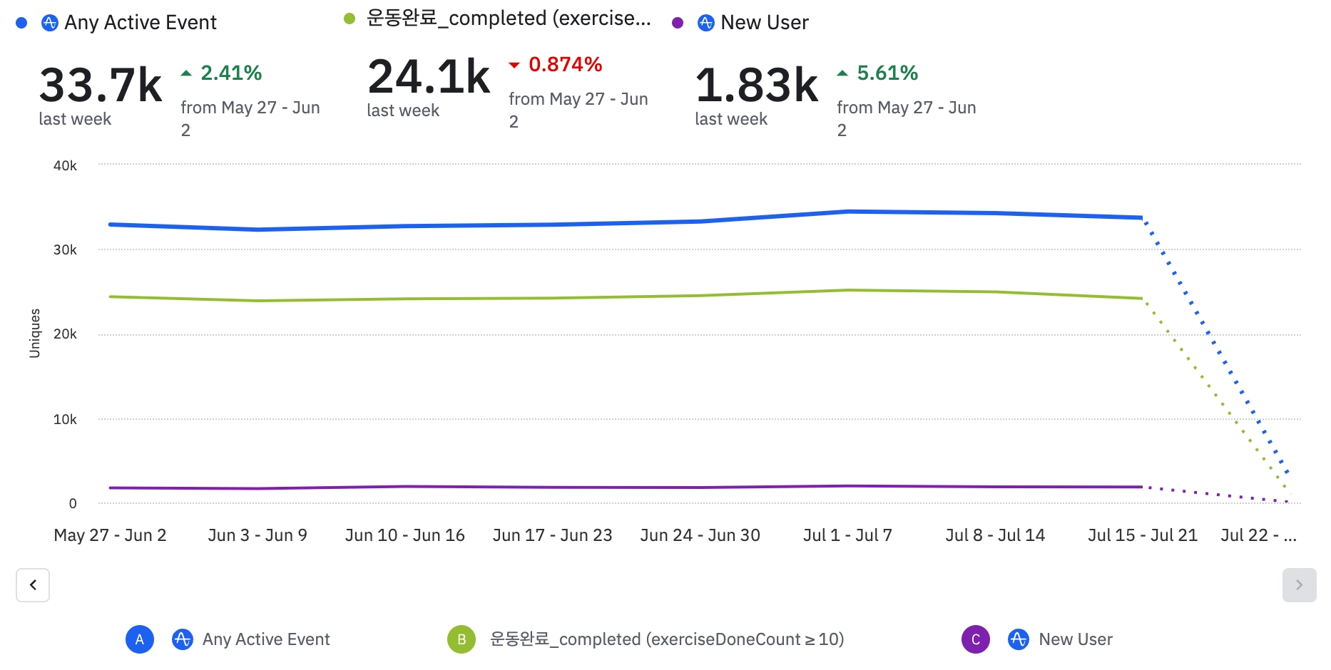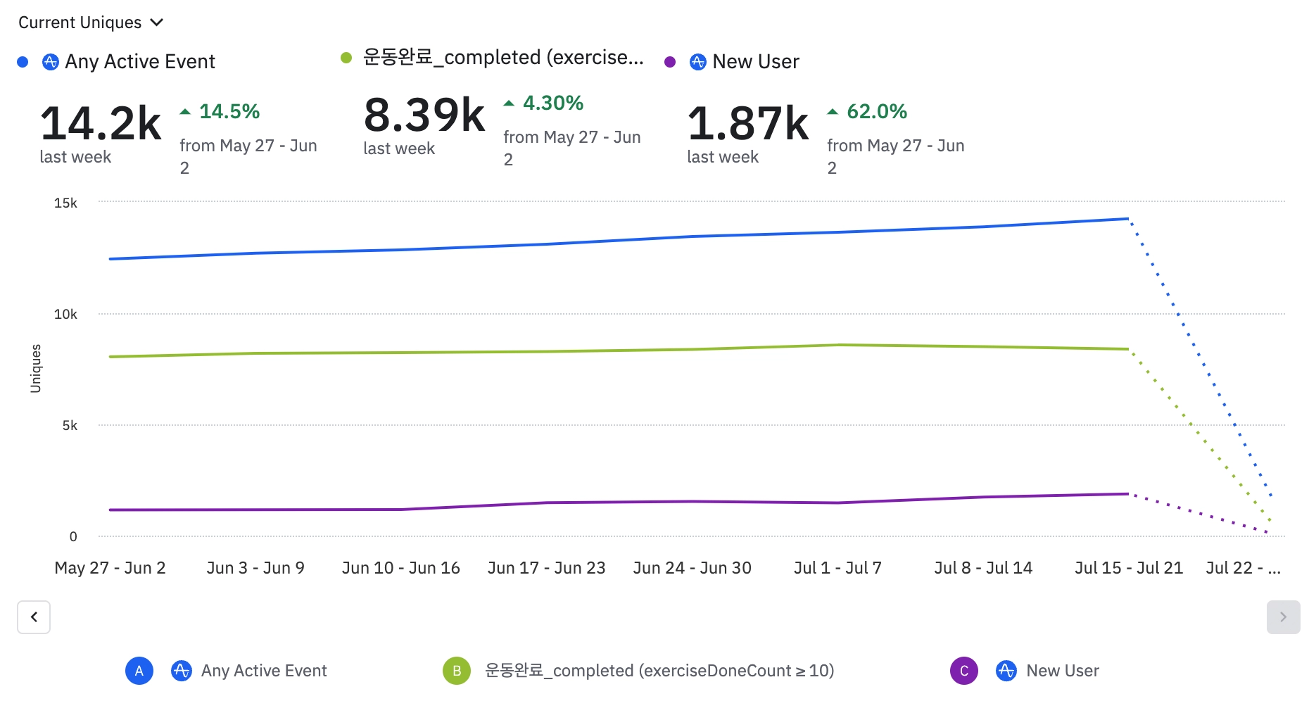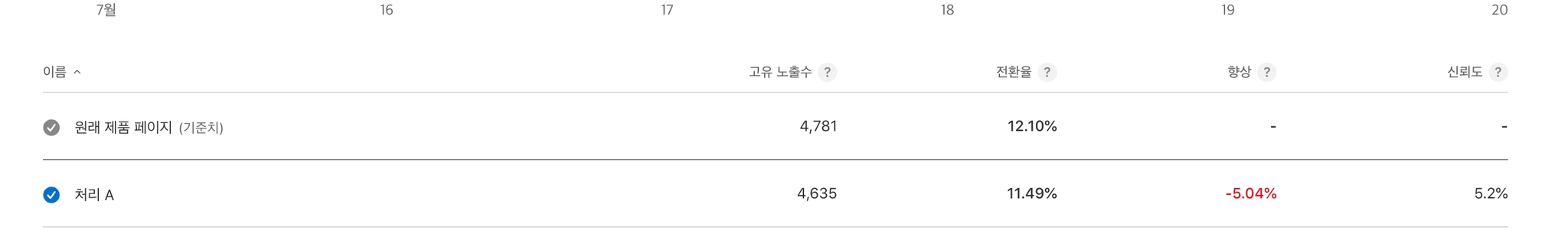 한국 스크린샷 A/B 테스트 중, 7일차.