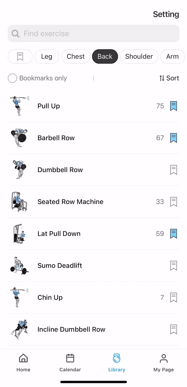 The exercise library now has sorting feature